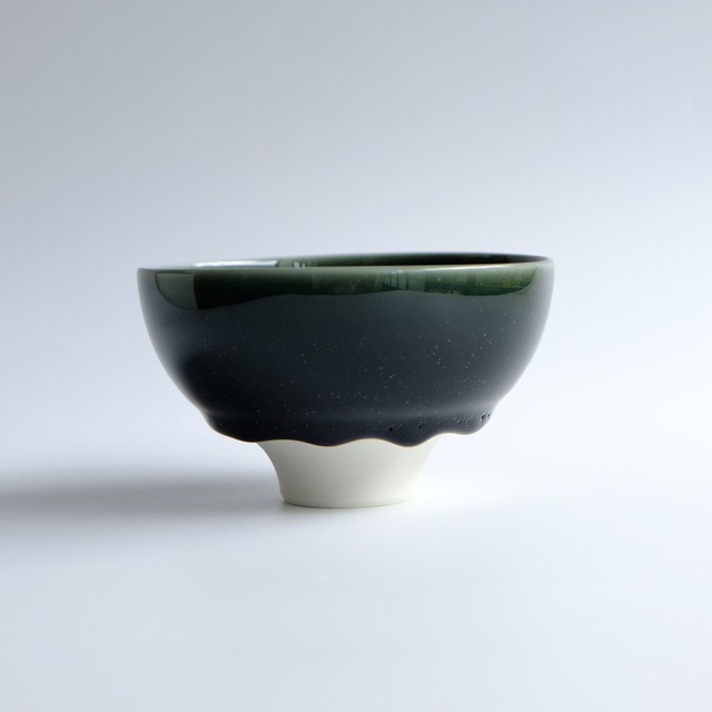 28-1 緑釉・コバルト釉重掛け 小茶碗 /モリス ゾイ Tea bowl by Zoe Morris