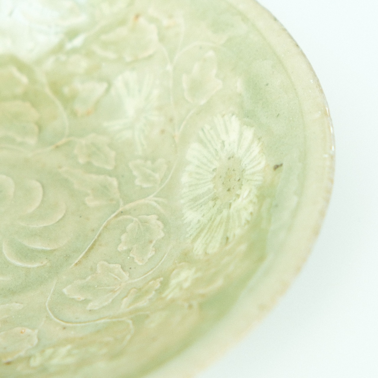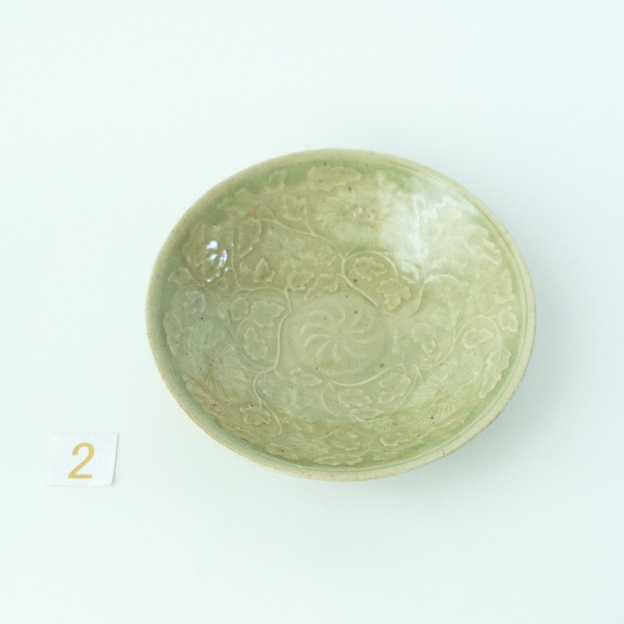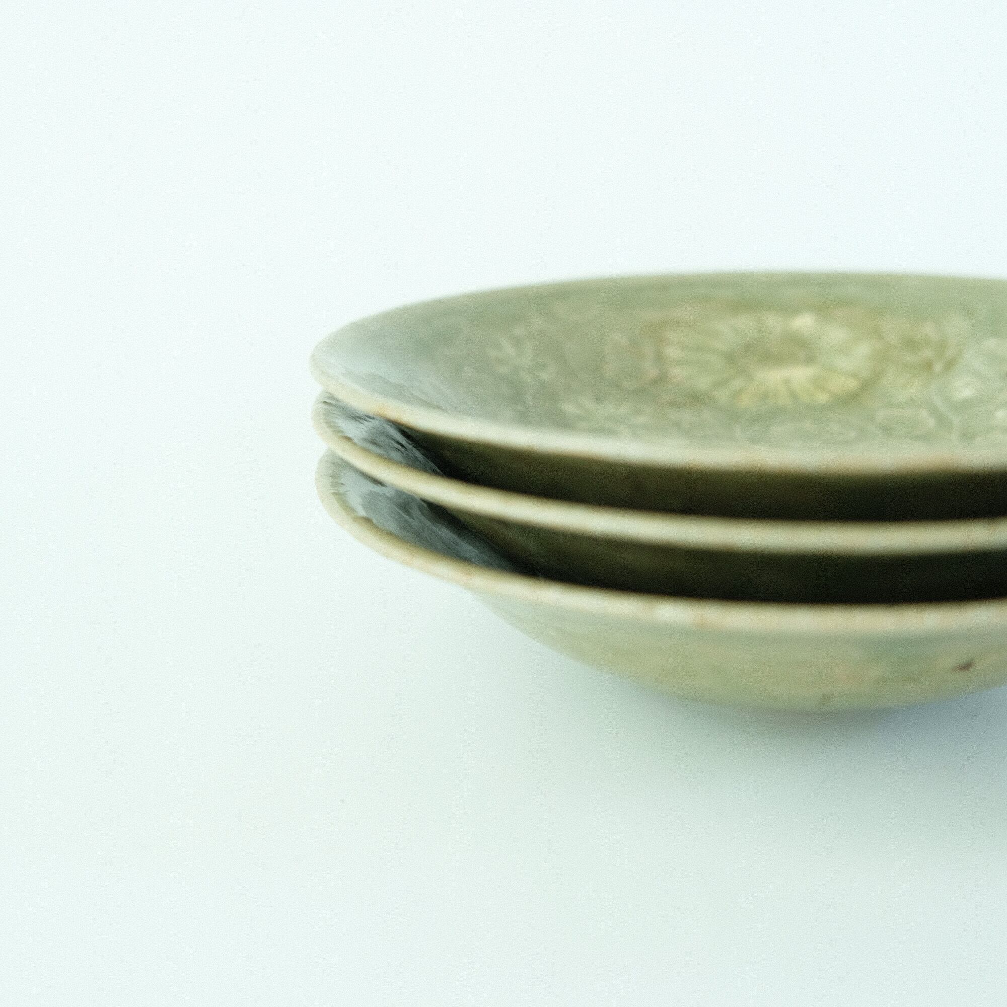 H1 青磁印花象嵌菊文碗 日高伸治 Blue porcelain bowl by Shinji Hidaka