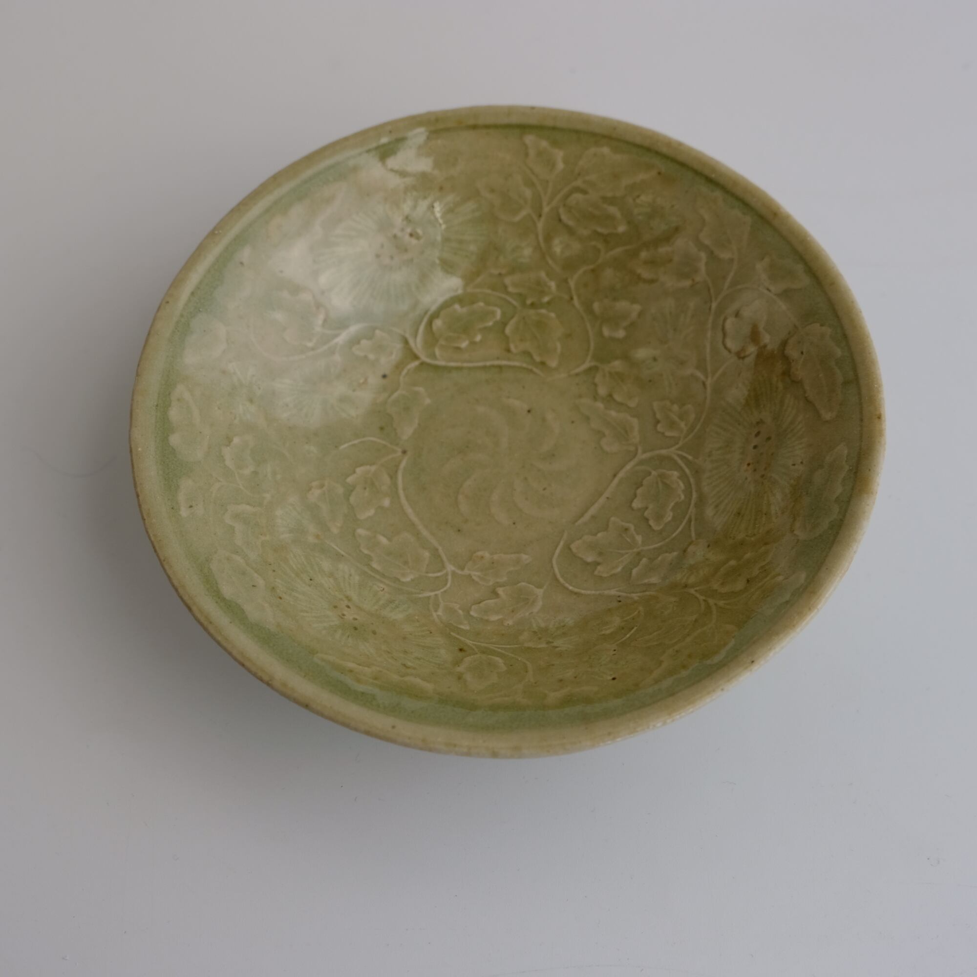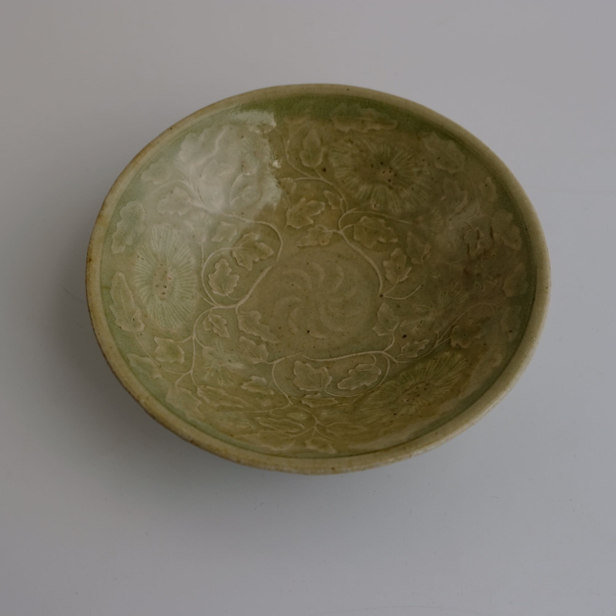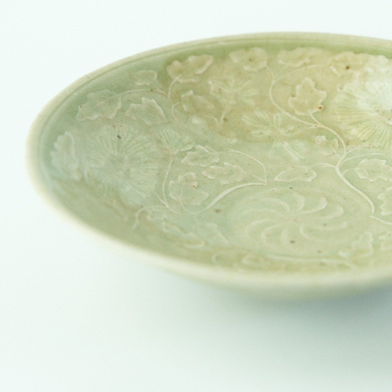 H1 青磁印花象嵌菊文碗 日高伸治 Blue porcelain bowl by Shinji Hidaka