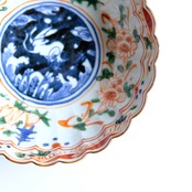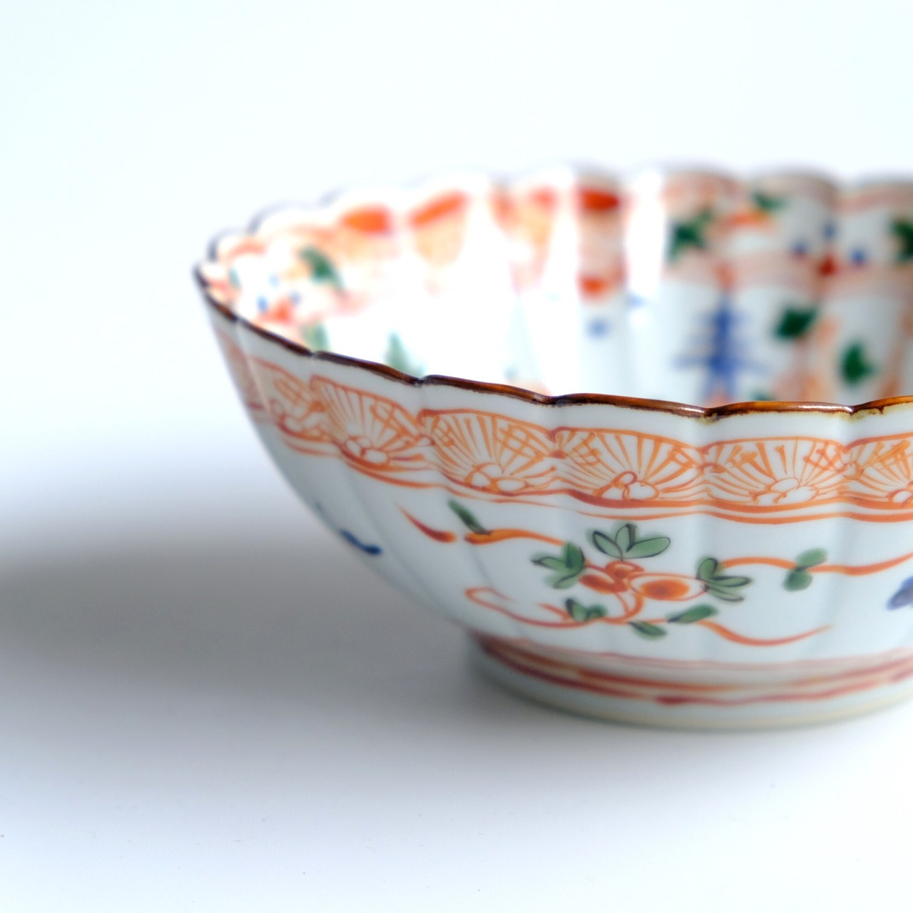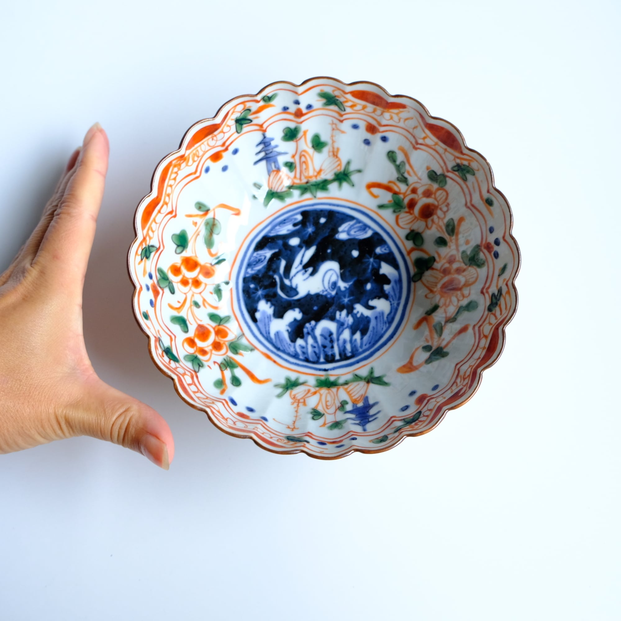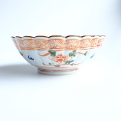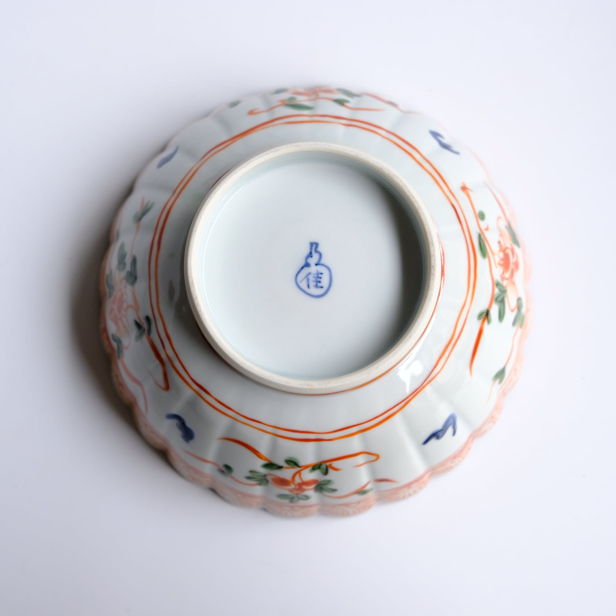 34-2 稲葉カヨ 菊型鉢(大)赤絵 福キクウサギ Kayo Inaba Bowl