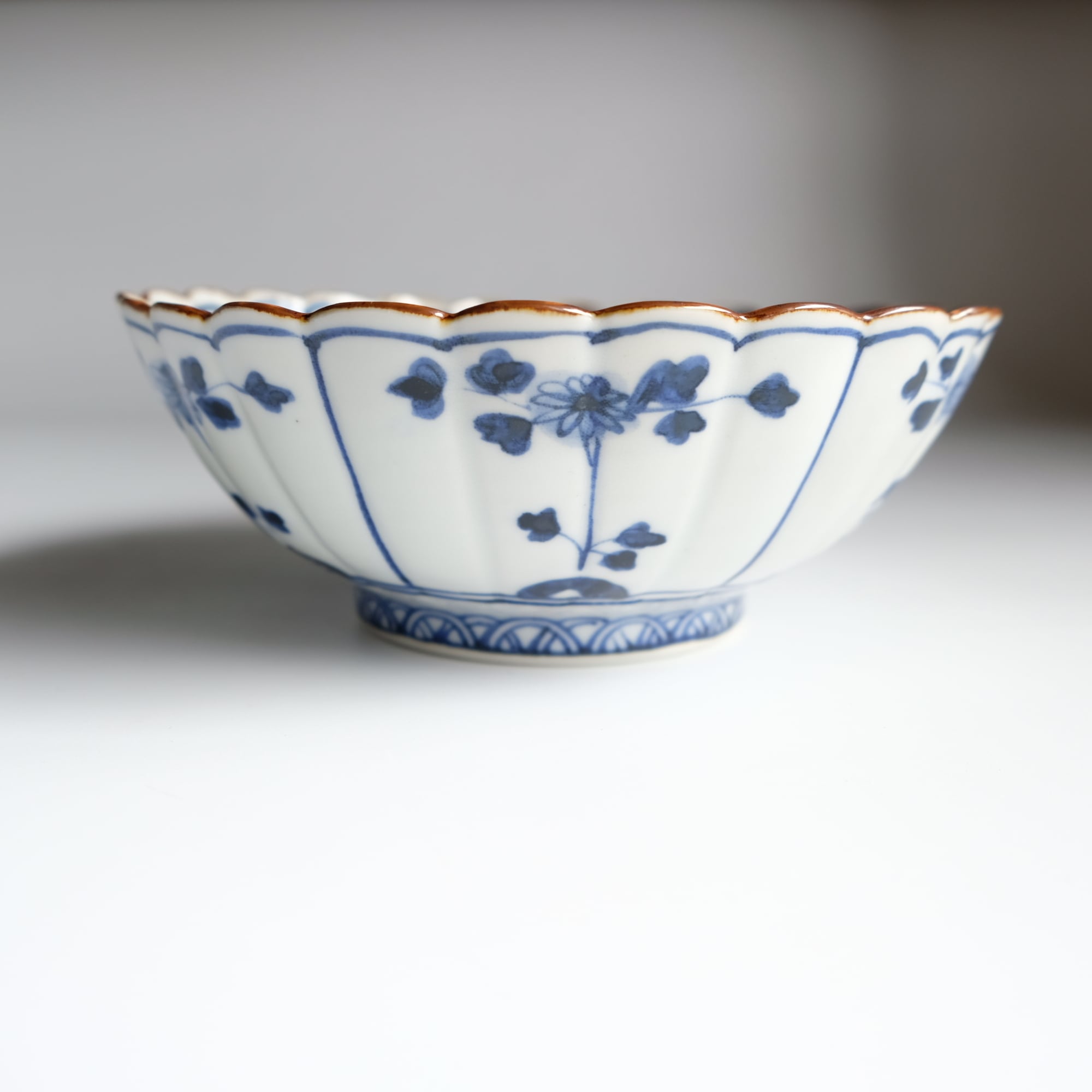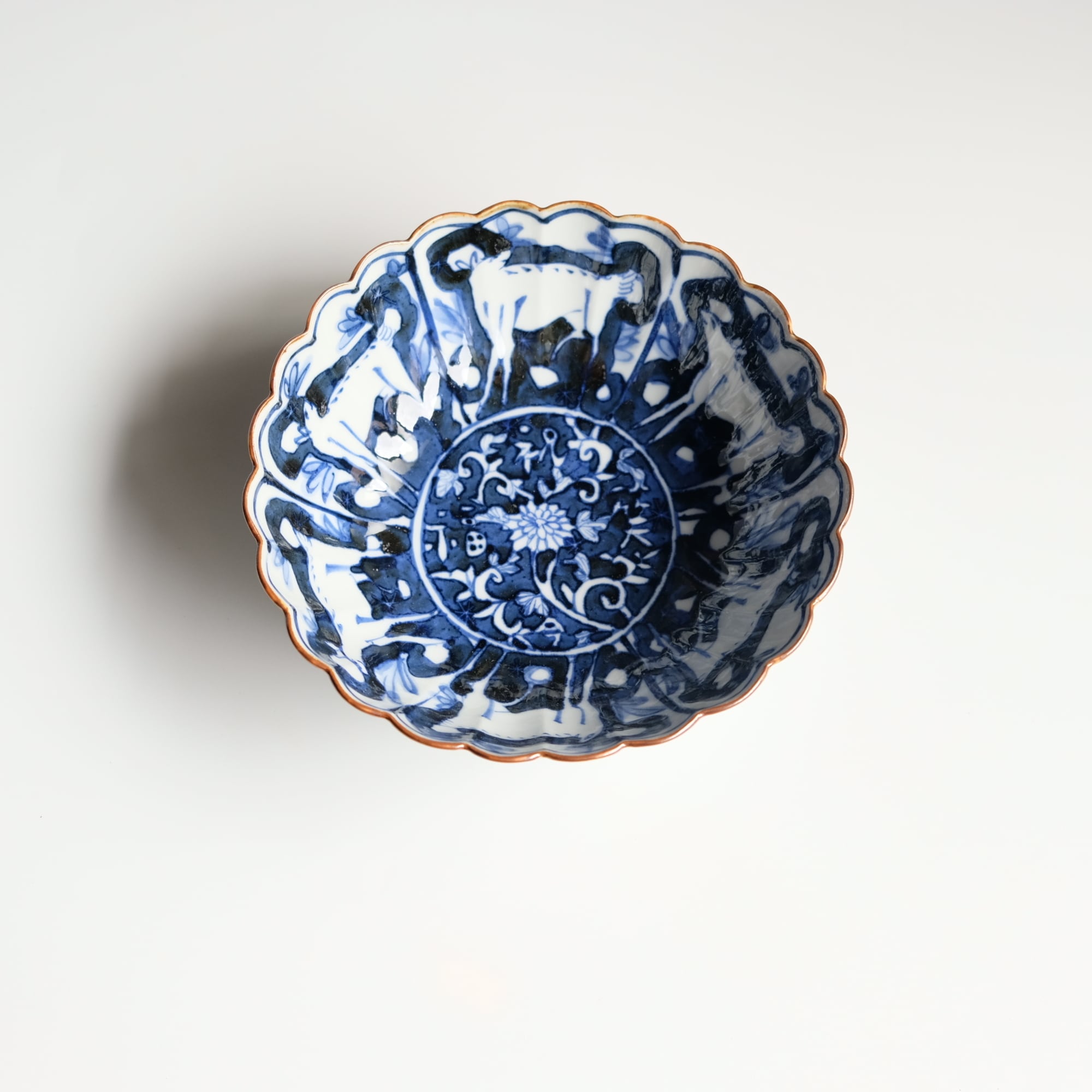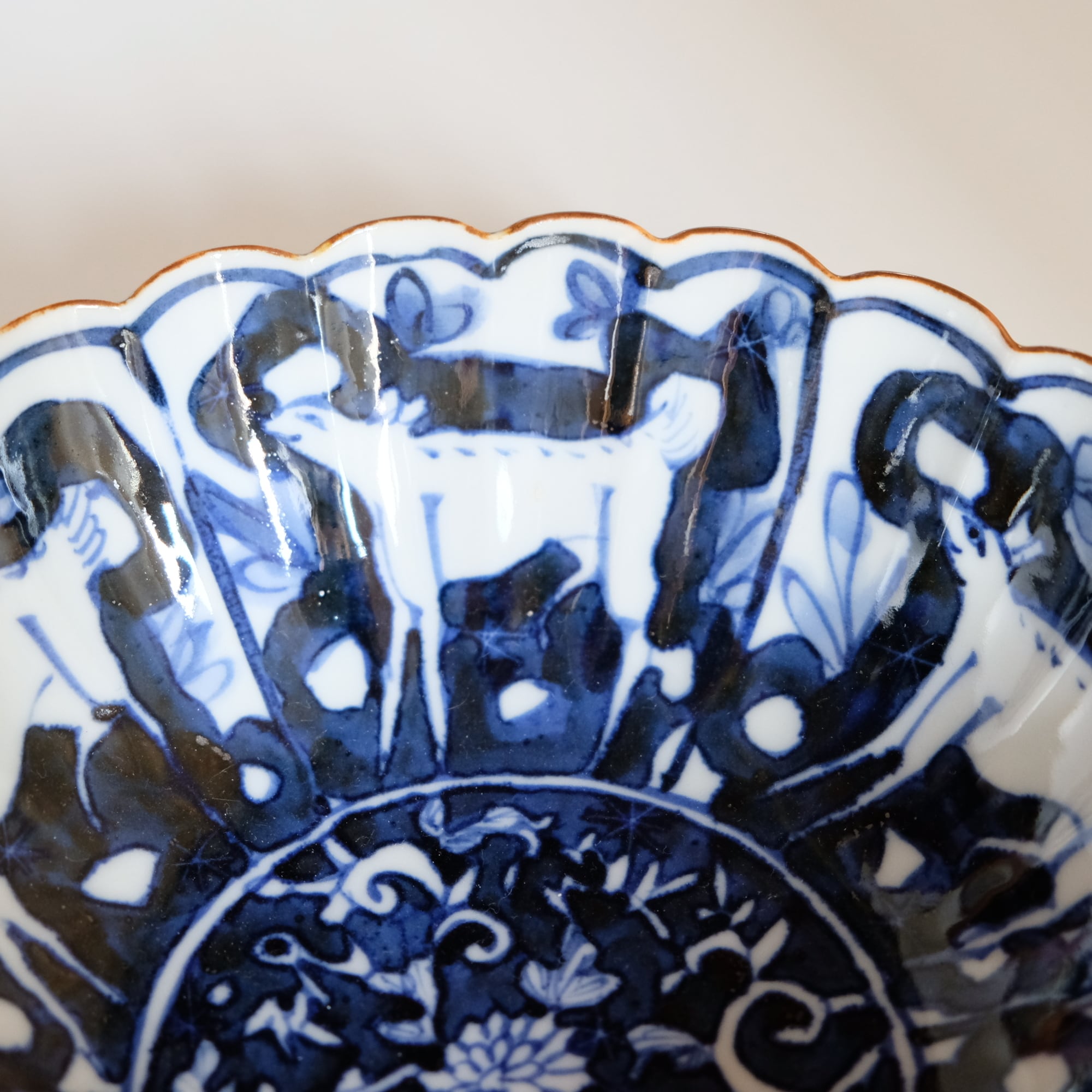 35 稲葉カヨ 菊型鉢 染付 福キクシカシカ Kayo Inaba Bowl