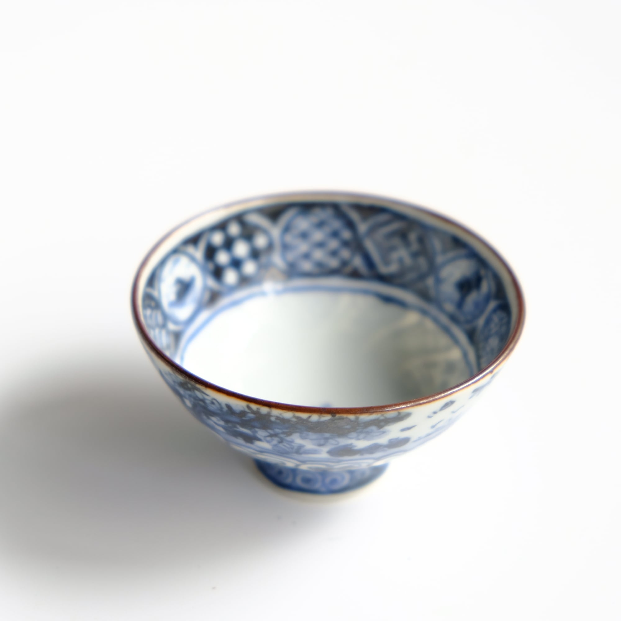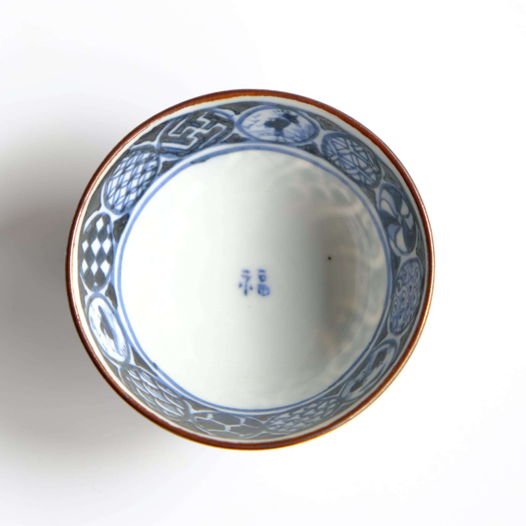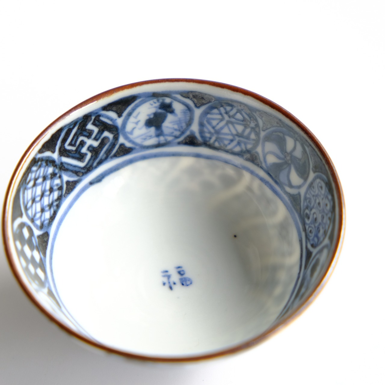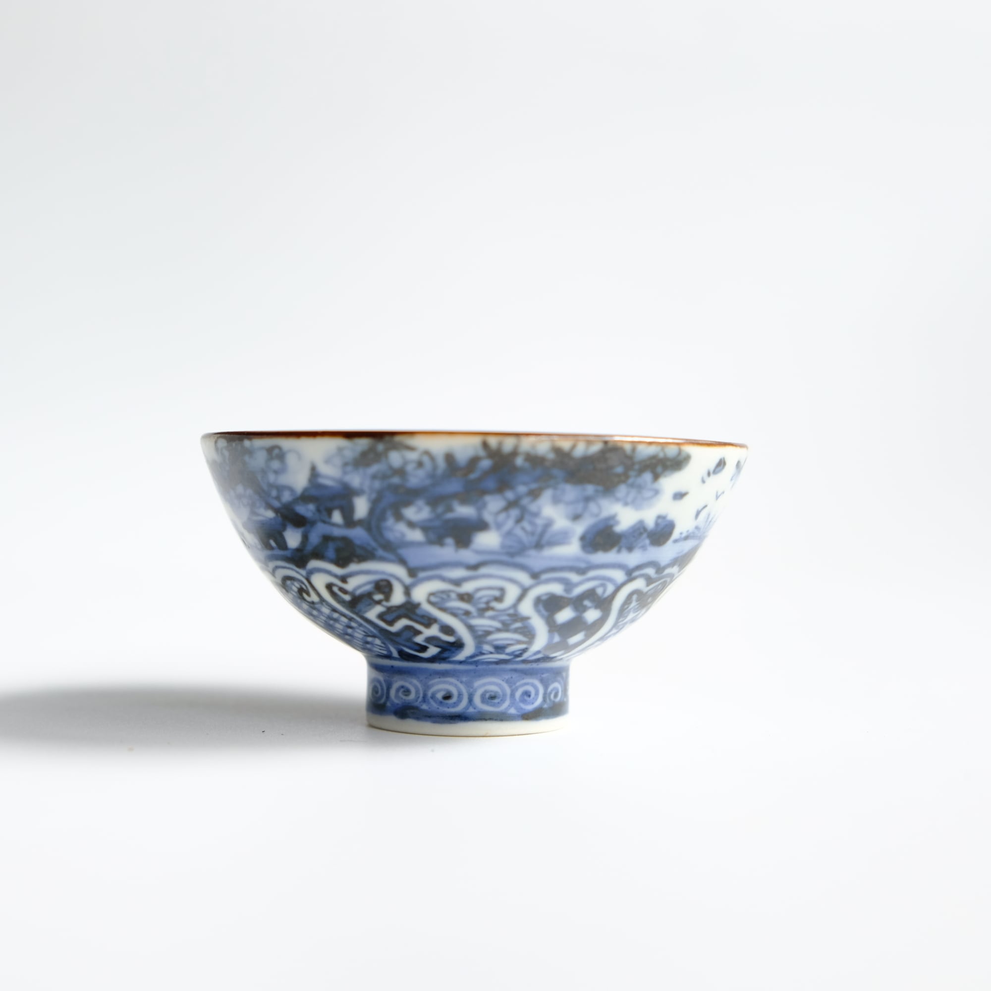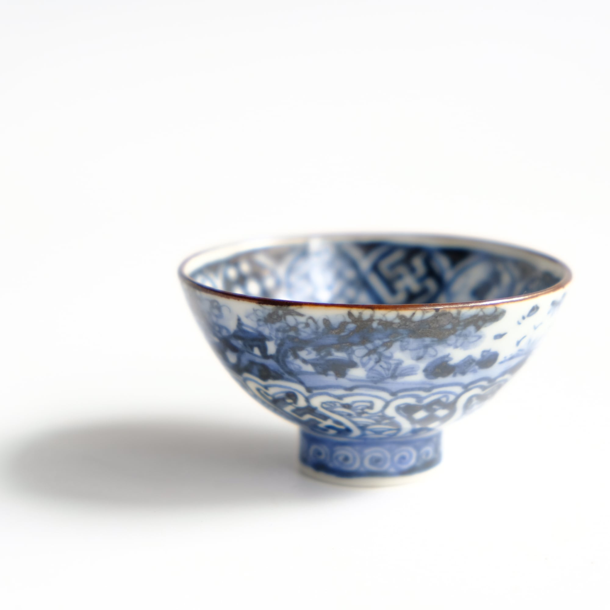 38 稲葉カヨ ぐい吞み 染付 丸文山水福祥瑞 Kayo Inaba Sake cup