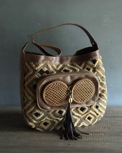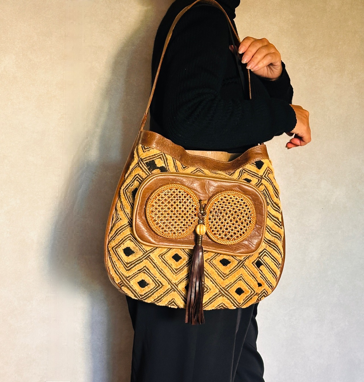 Material:leather, African kuba fabric, Bali basket