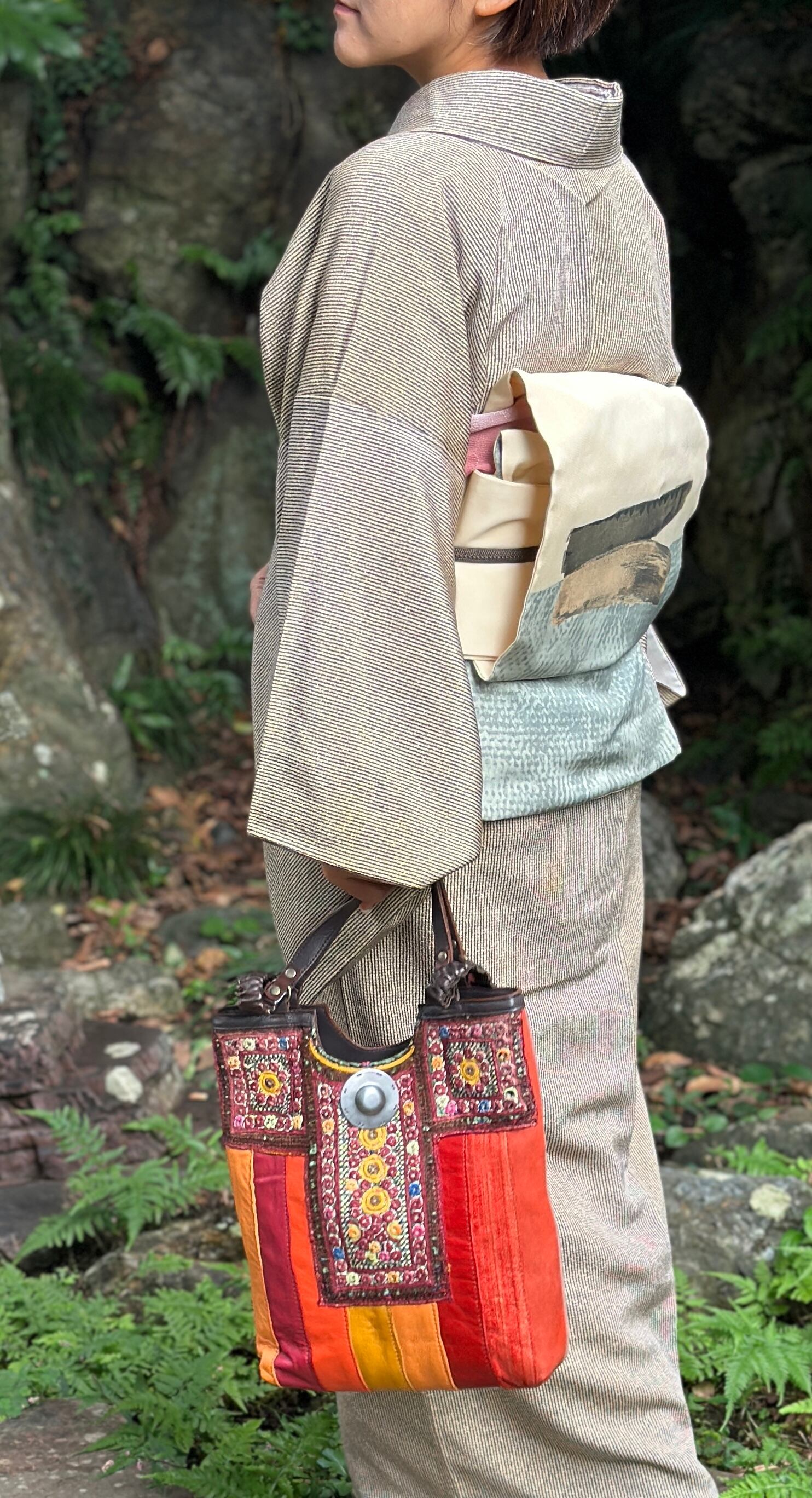 中国やトルコ・モロッコ・アジアを旅して出会った古布や古金具を生かしてバックを制作。