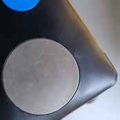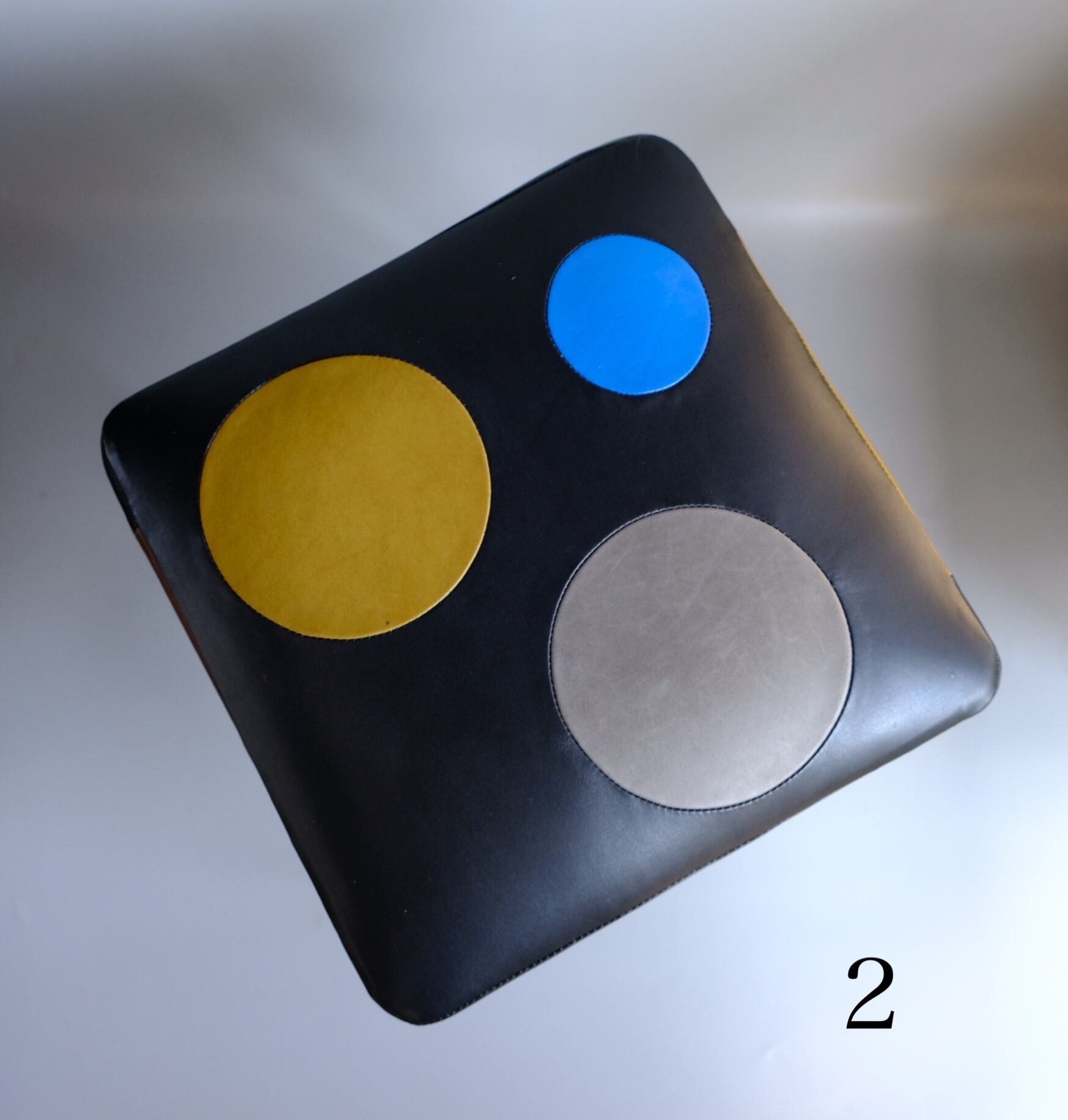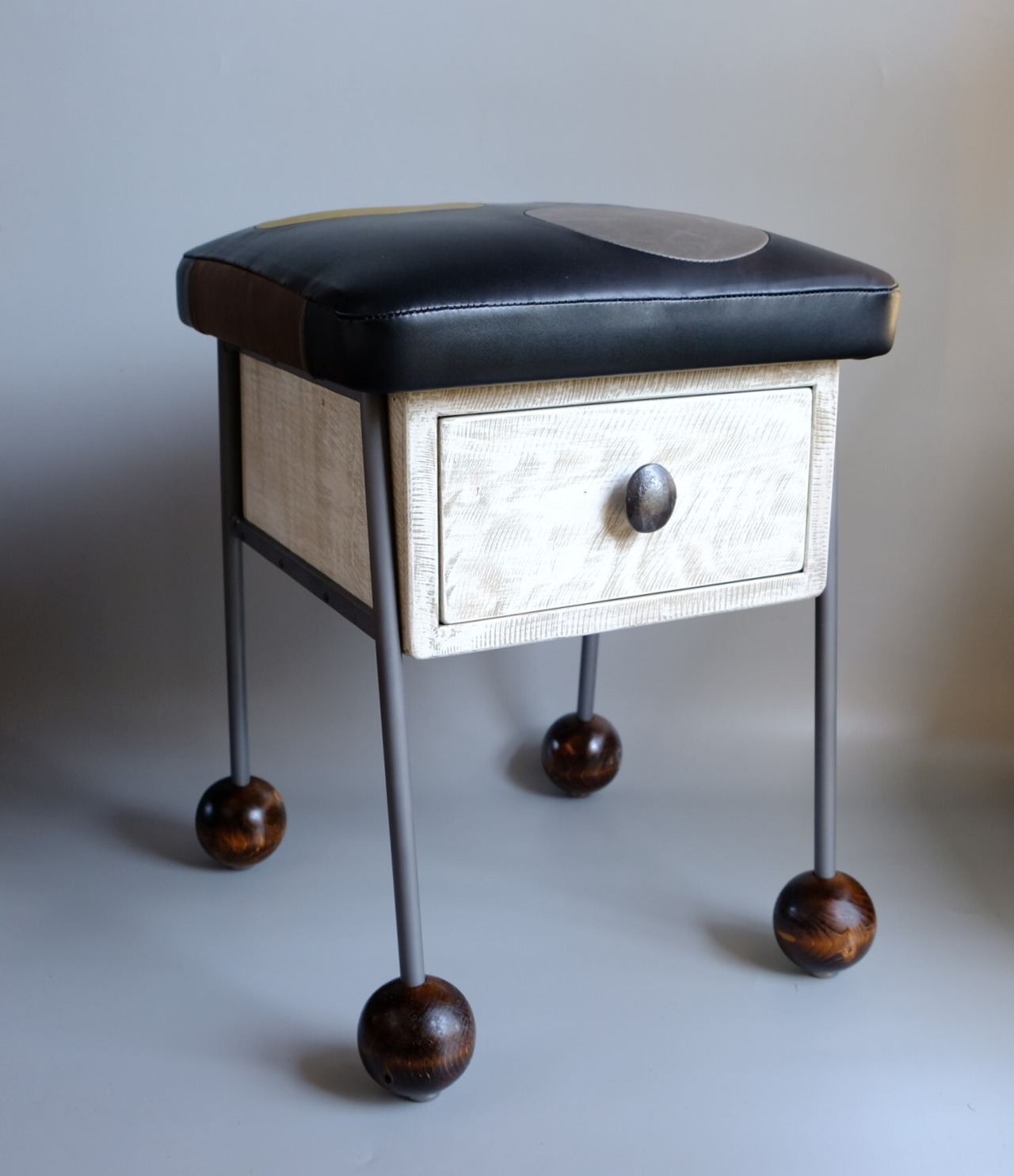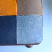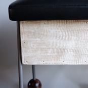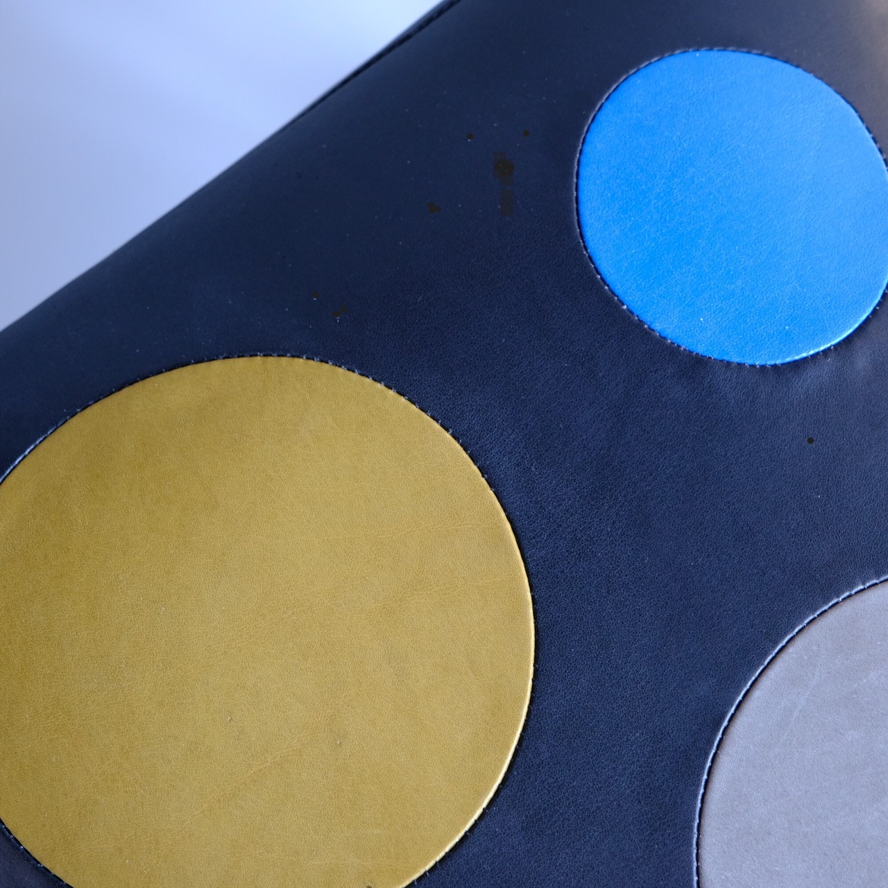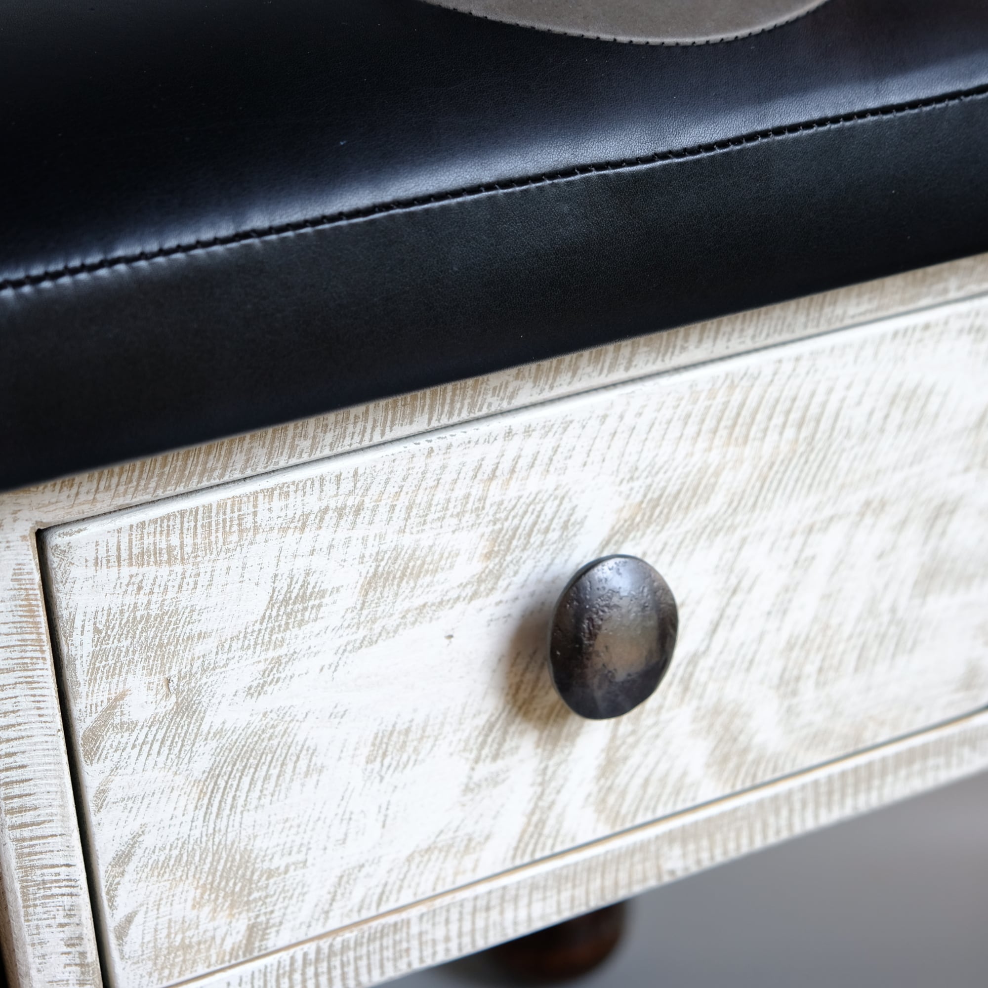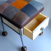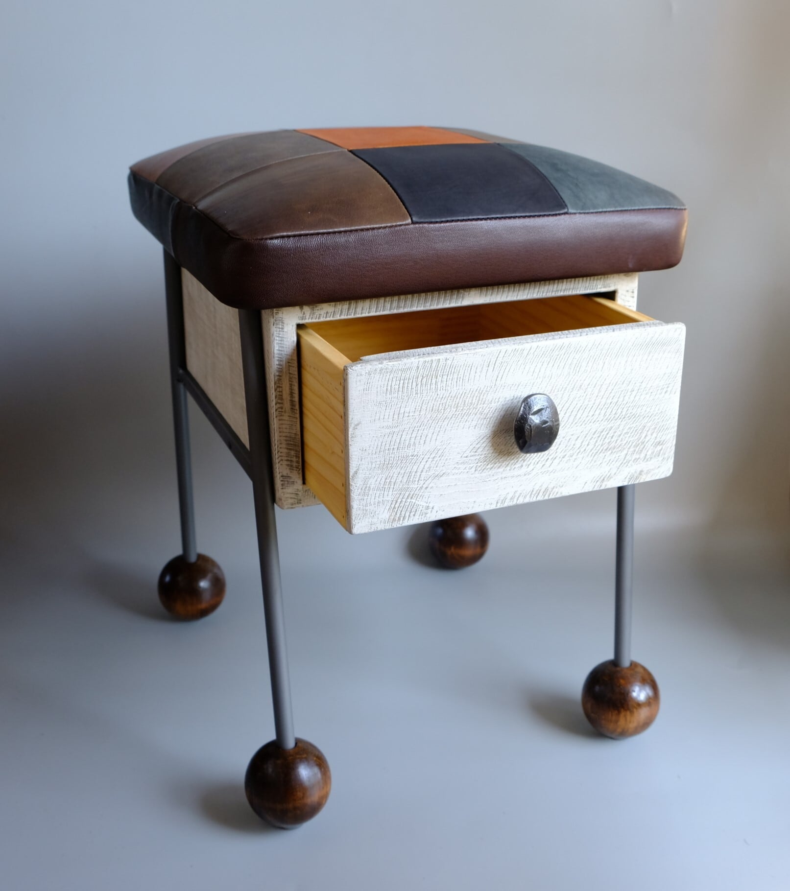 カラフルな座面のレザーワークがインテリアのアクセントとしても活躍します。玄関に置いても引出しもあり便利です。