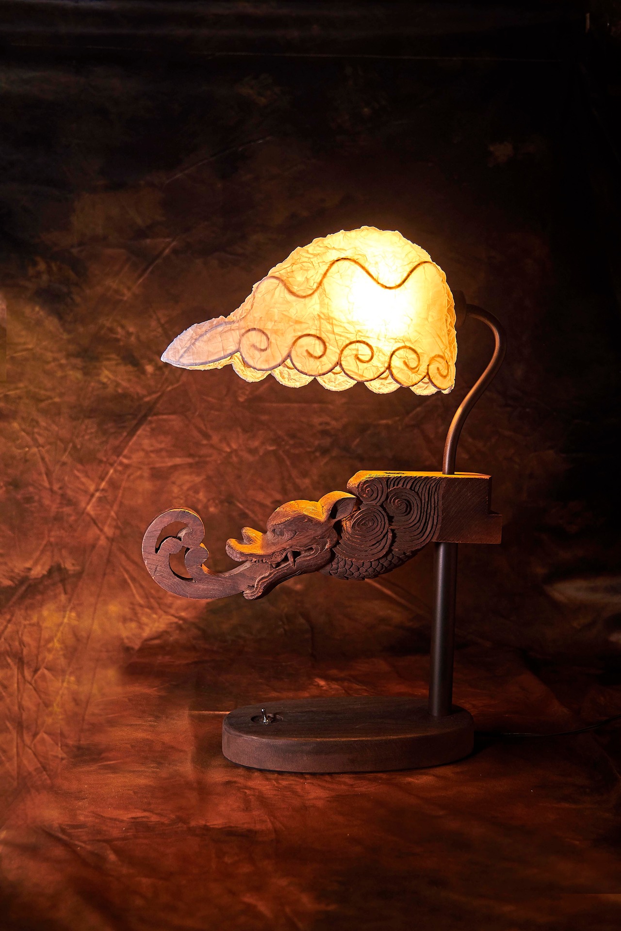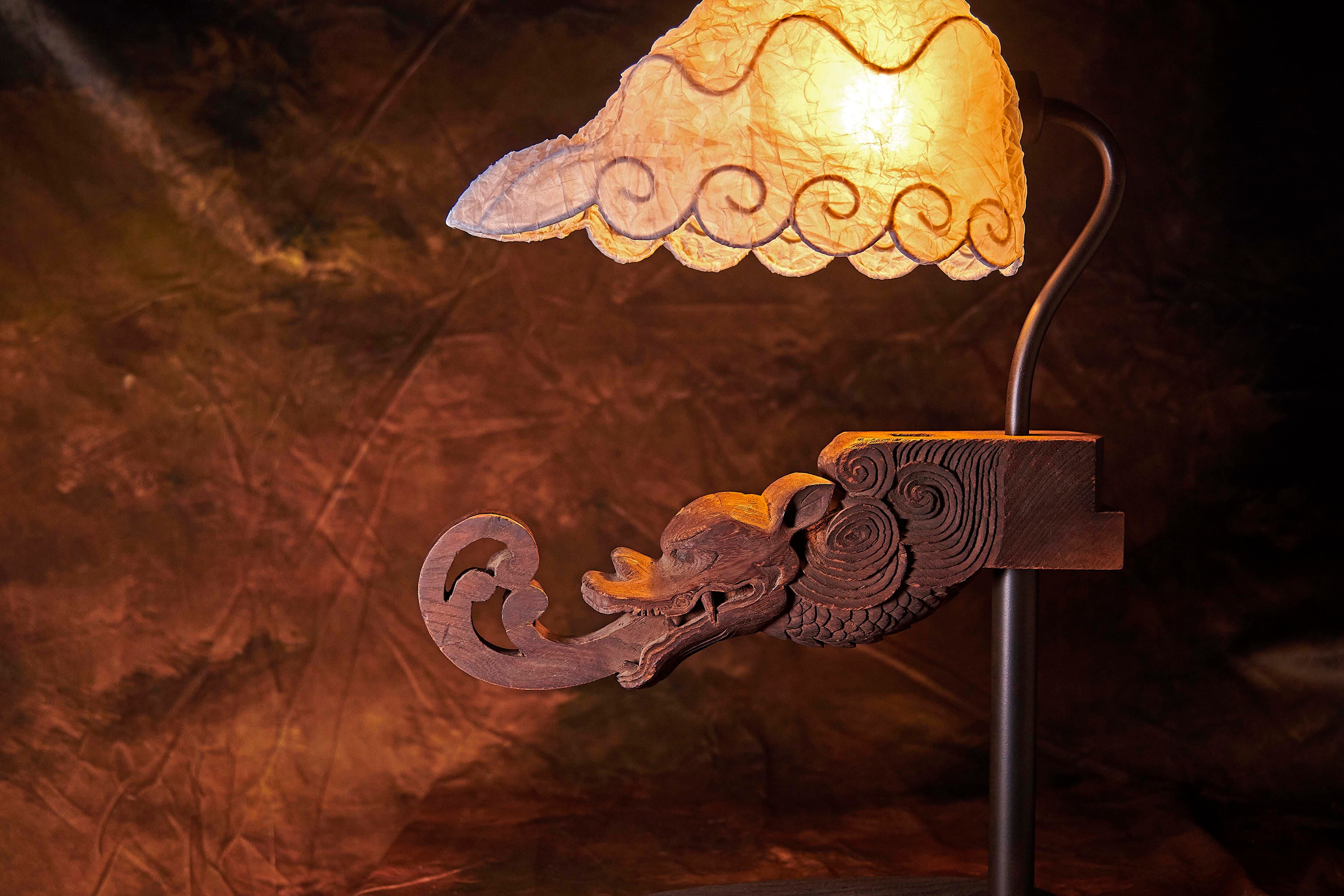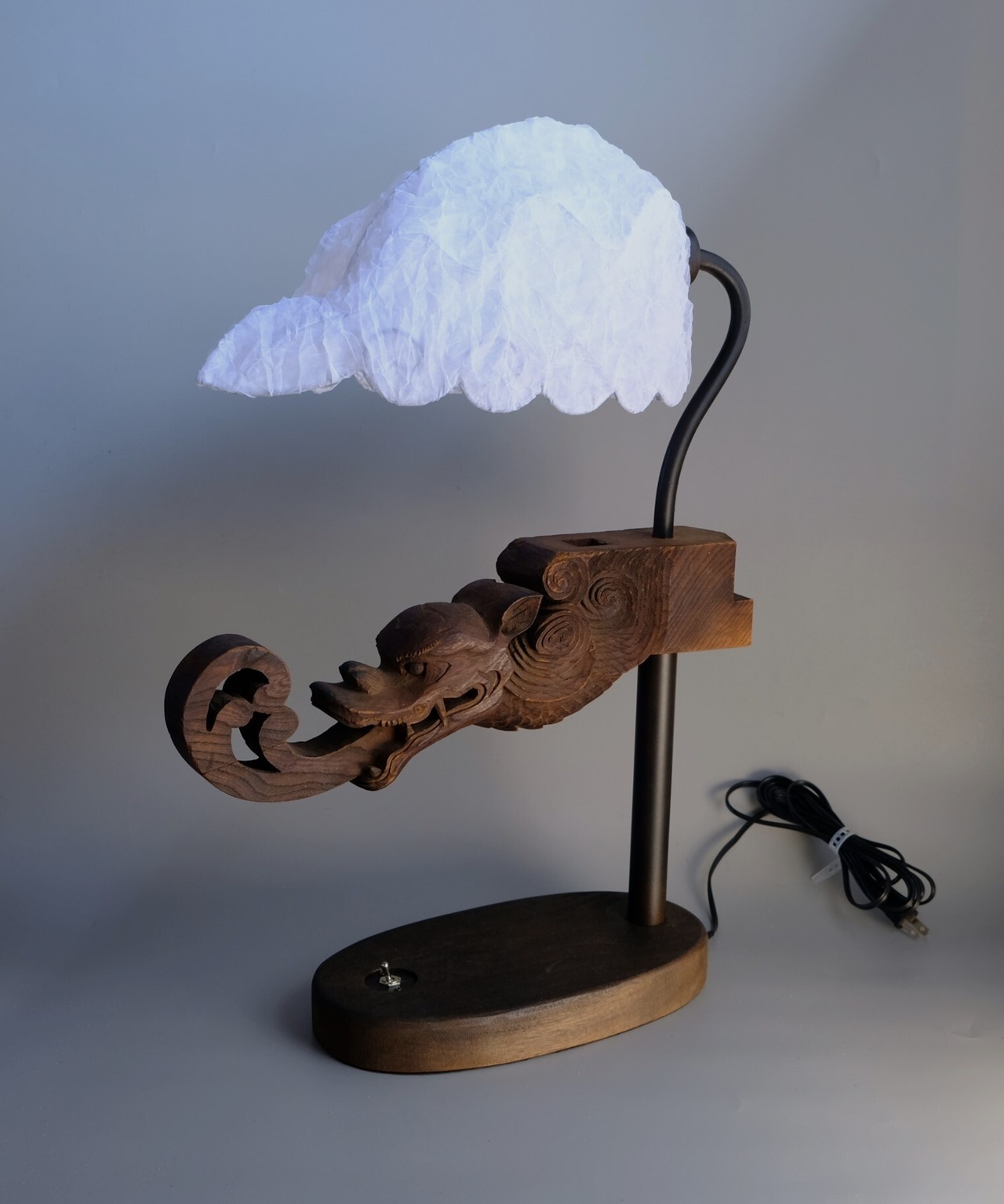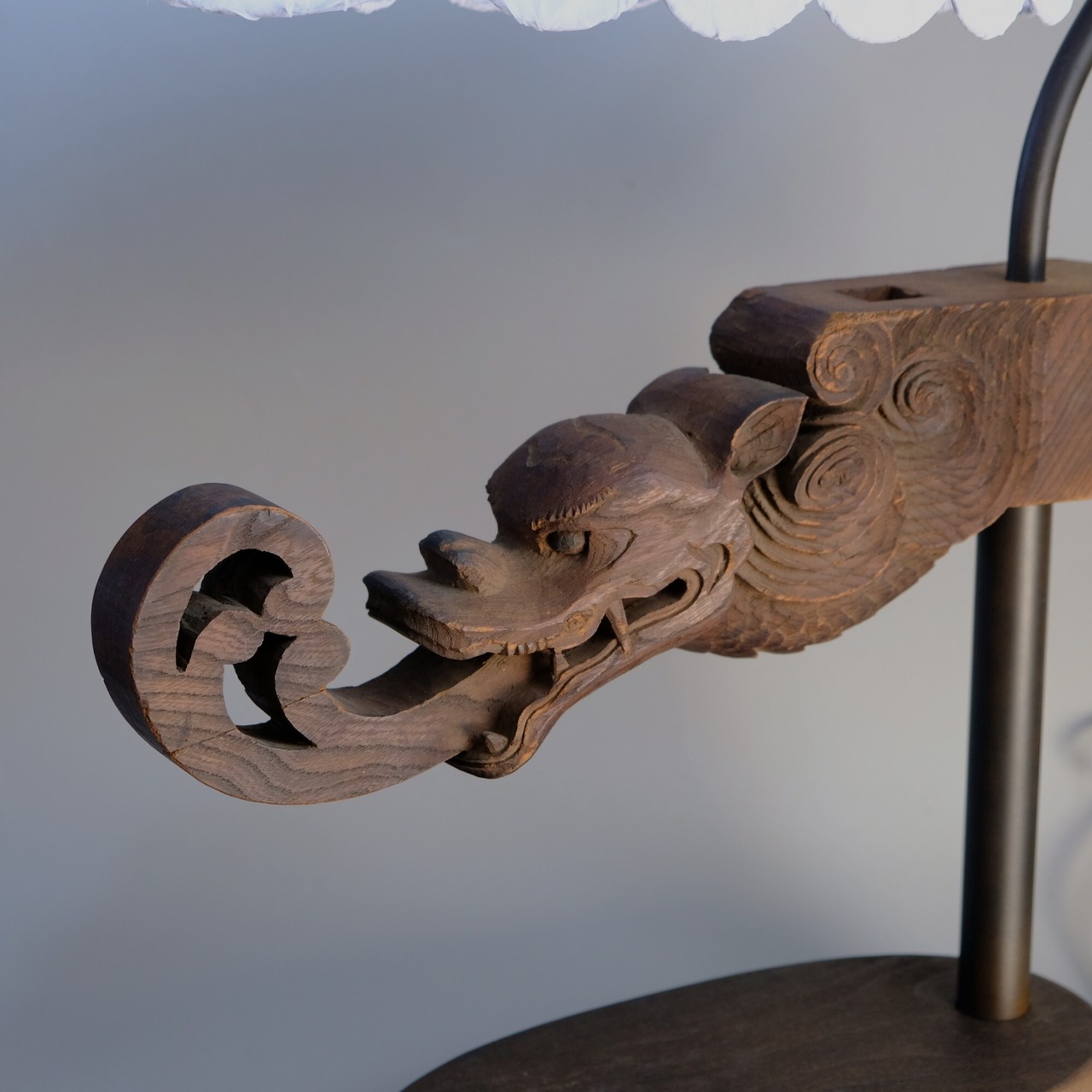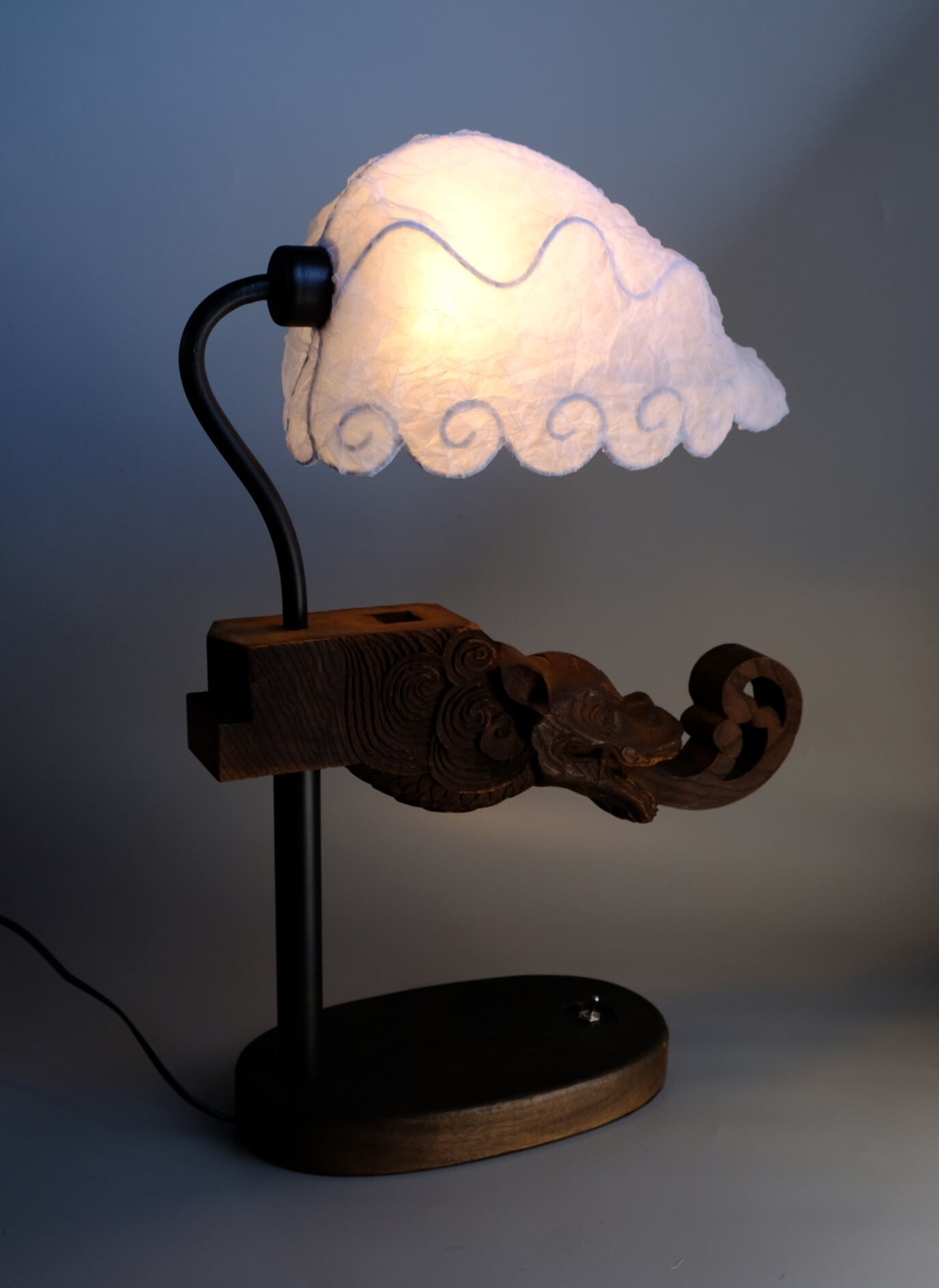 古木のドラゴンモチーフをライトスタンドに仕上げました。