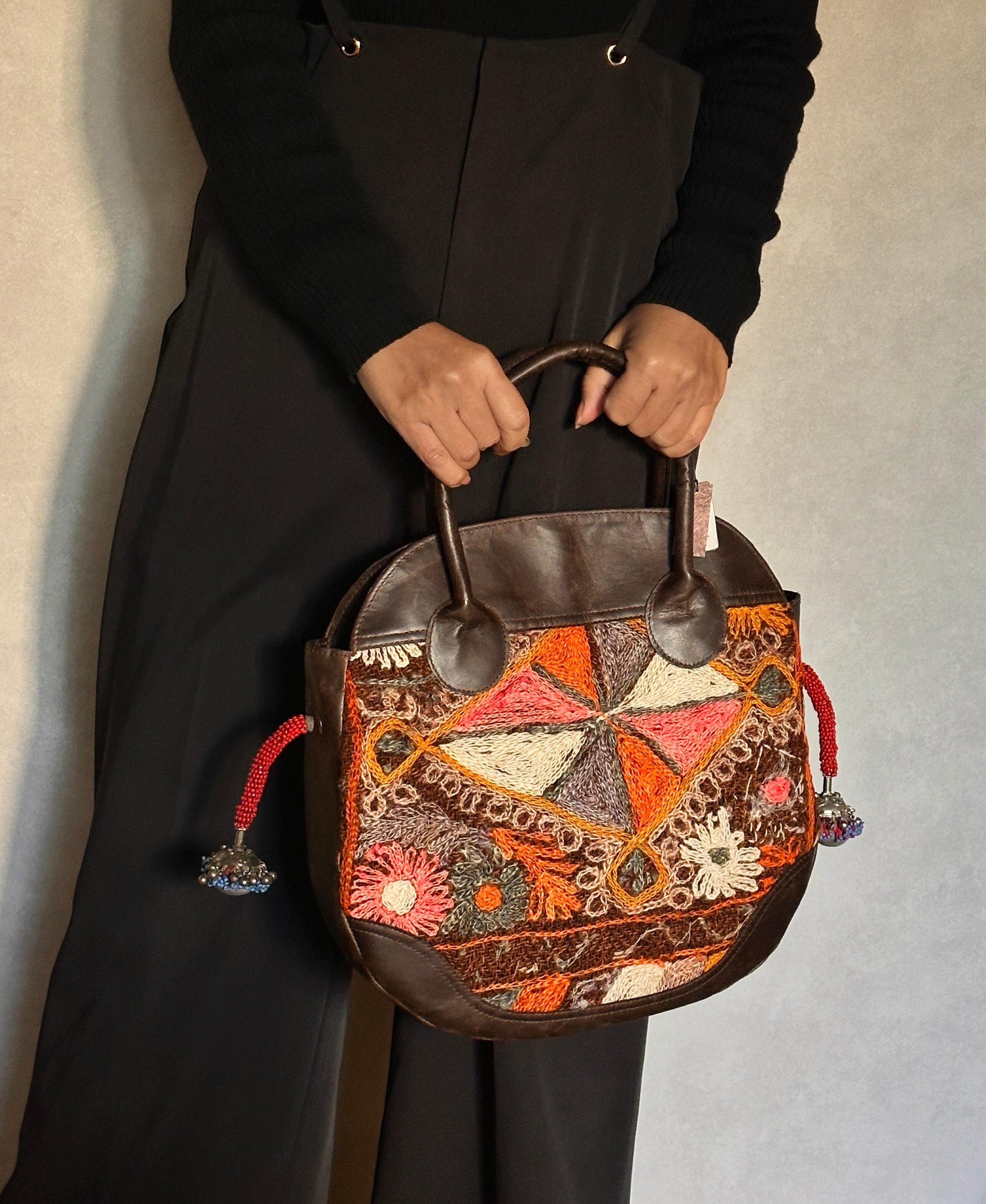 国内外を巡り集めた素材と革を使い、一点一点丁寧に作られたバッグです。
