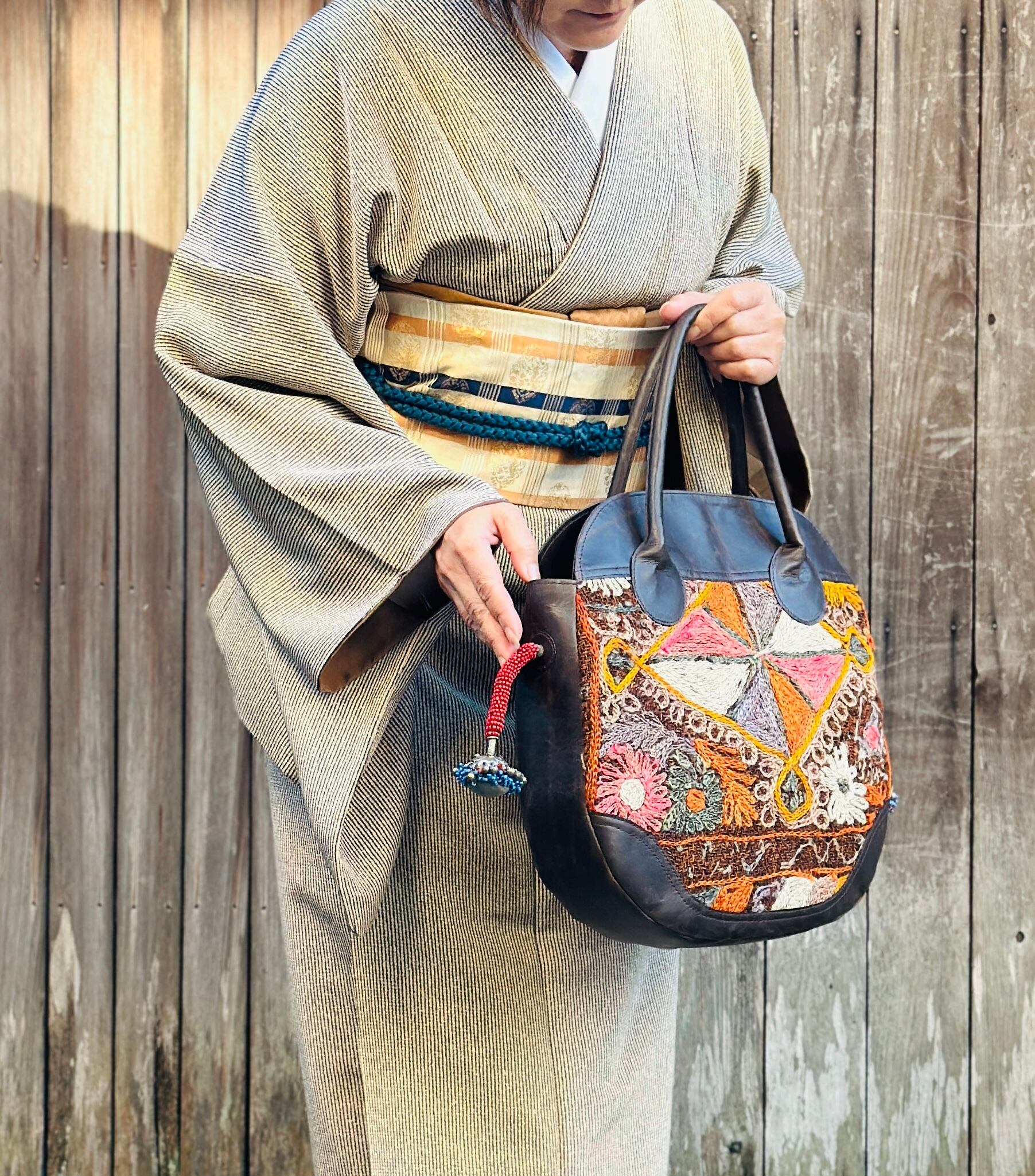 カジュアルにデニムでも、着物でも合わせられる万能で個性のあるバッグです。