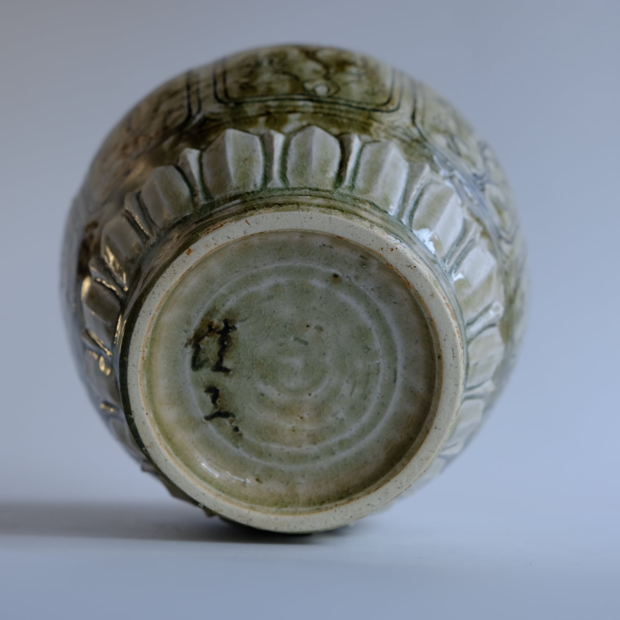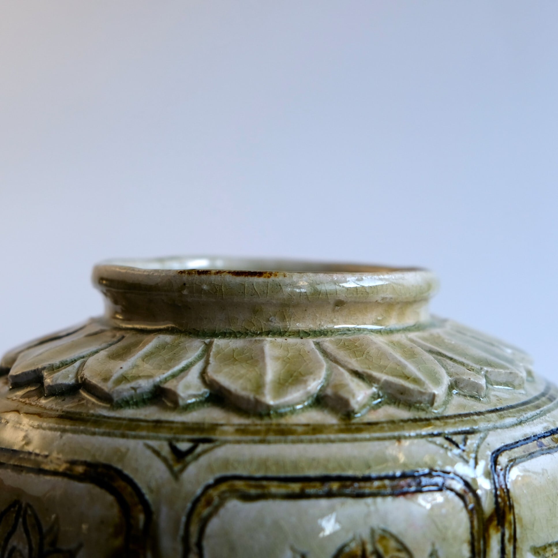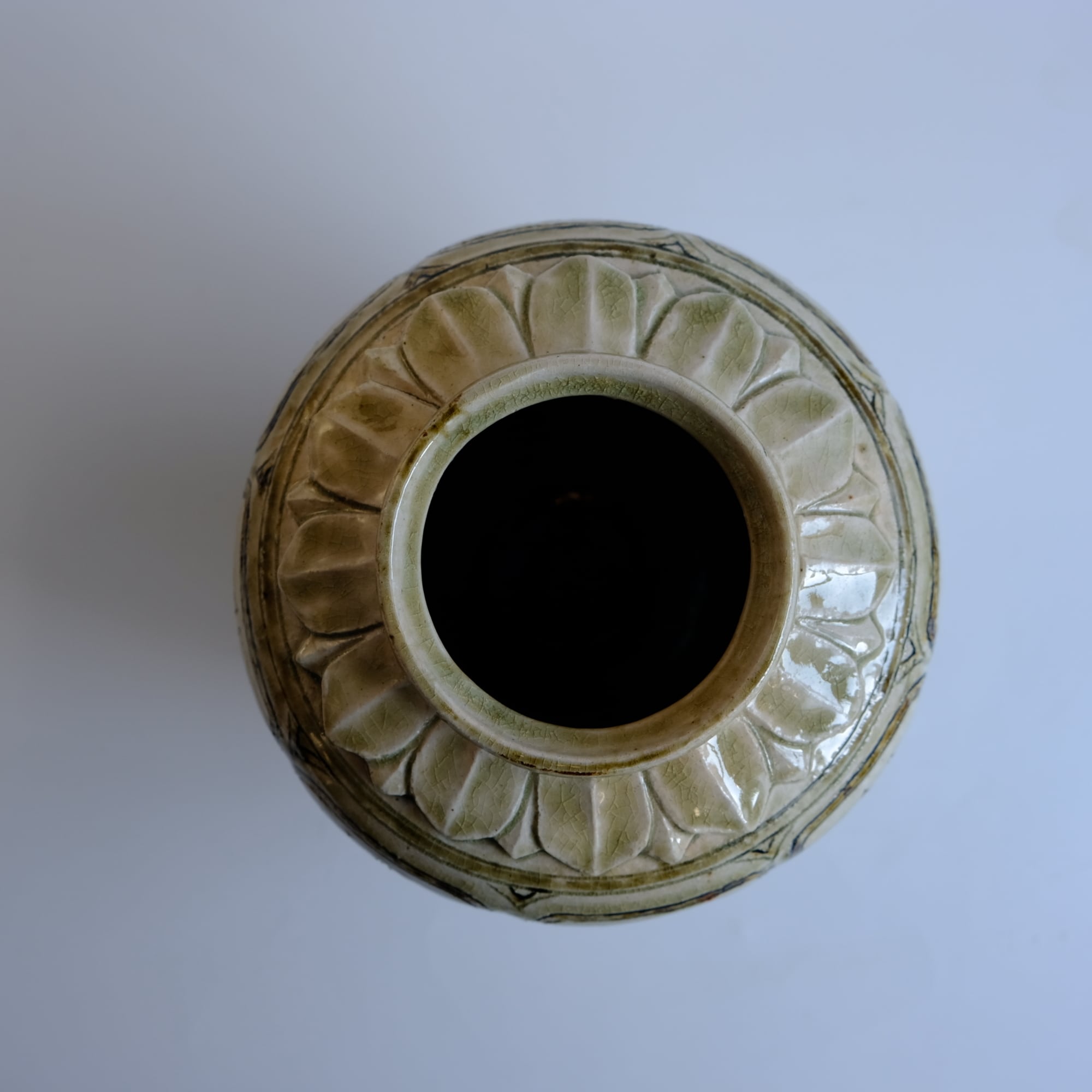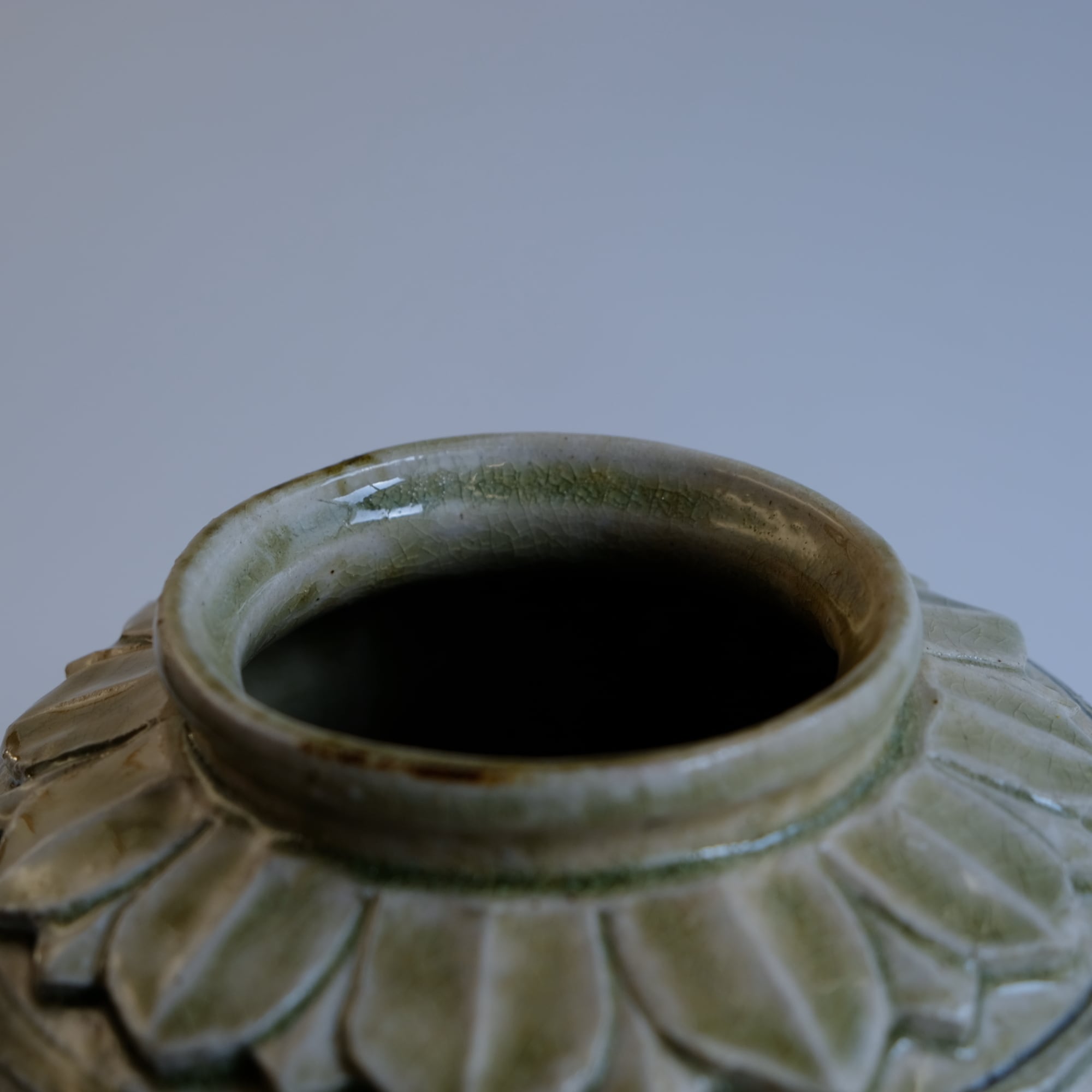2 灰釉鉄彩連弁花入れ 藤田佳三 Ashed glaze iron-decorated lotus-petal desined flower vase by Keizo Fujita