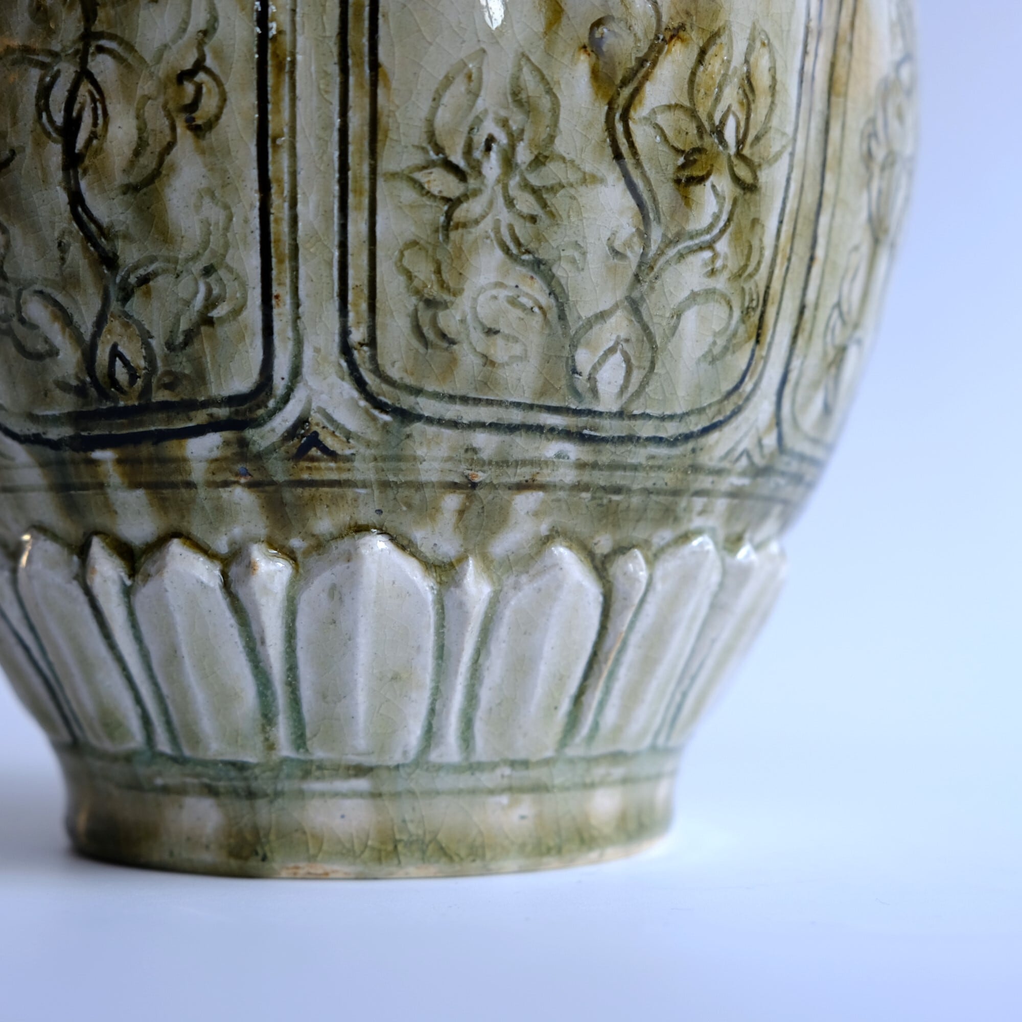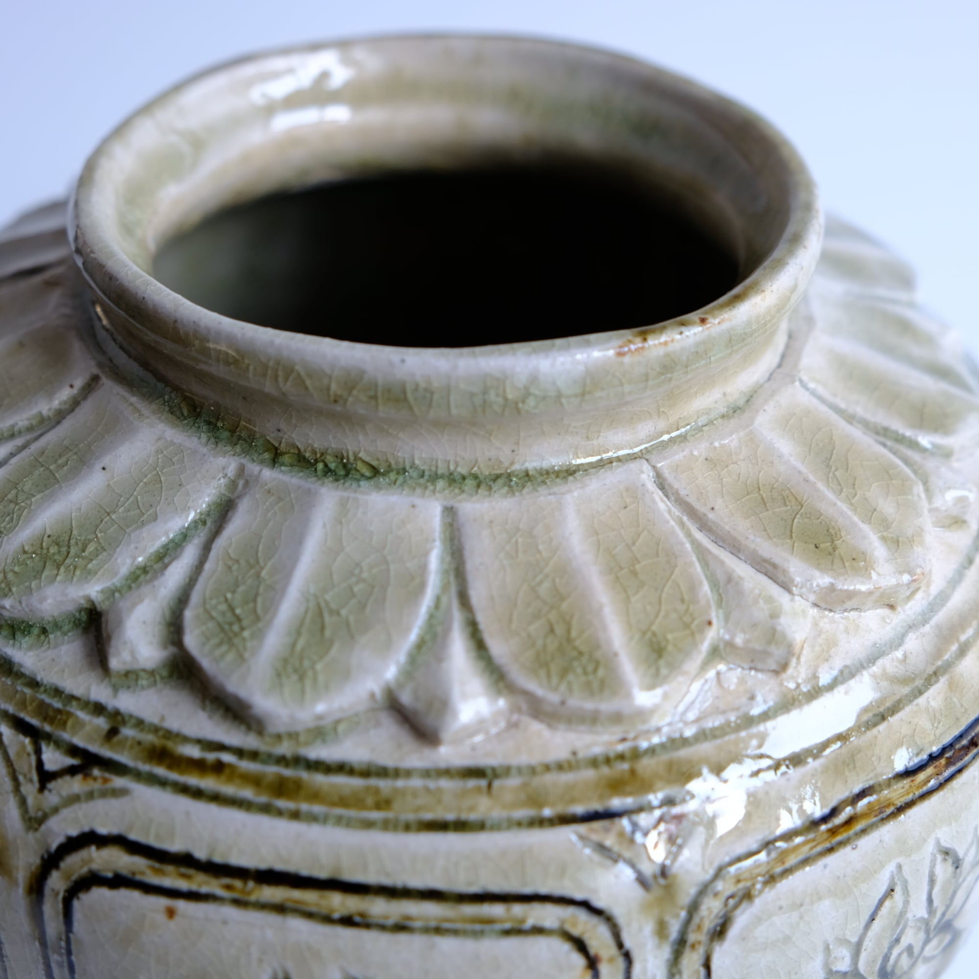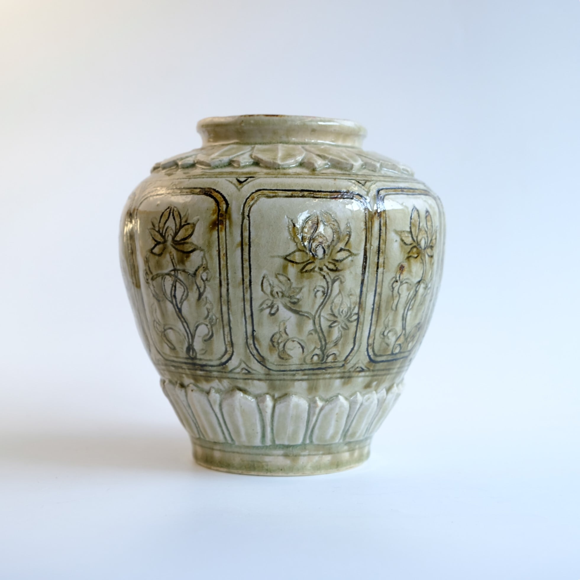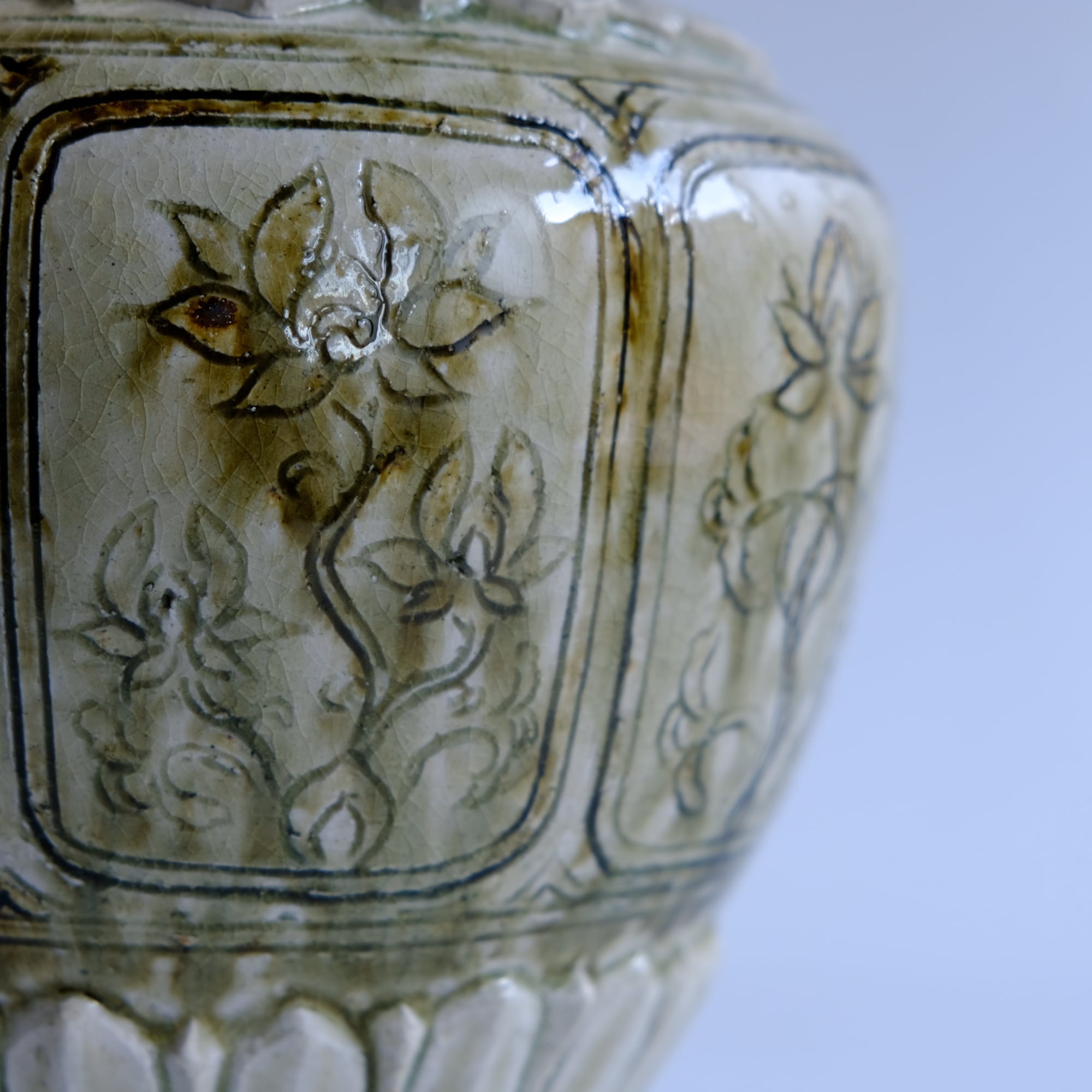 2 灰釉鉄彩連弁花入れ 藤田佳三 Ashed glaze iron-decorated lotus-petal desined flower vase by Keizo Fujita
