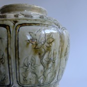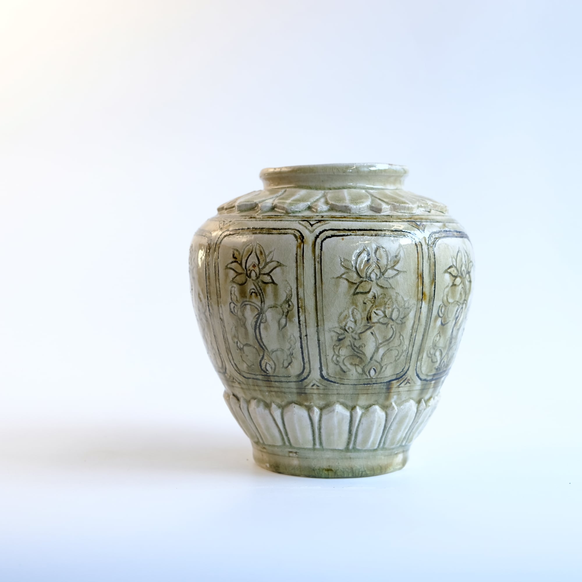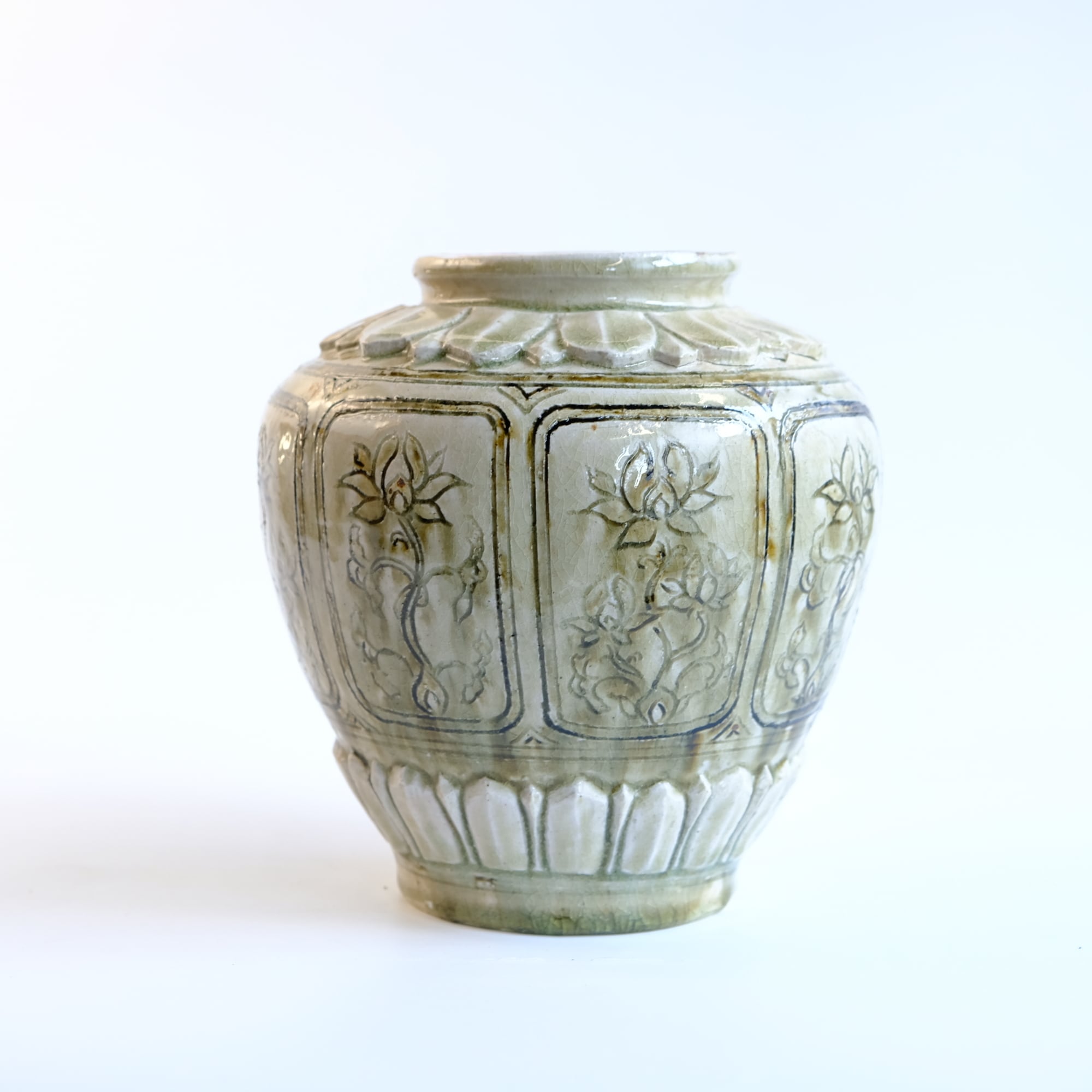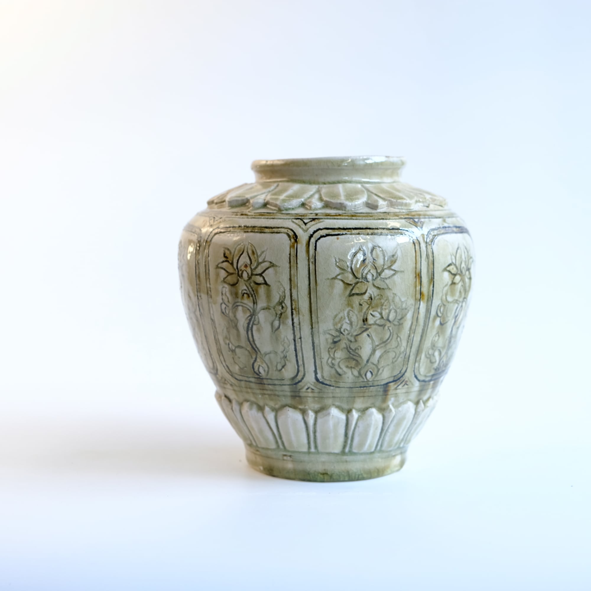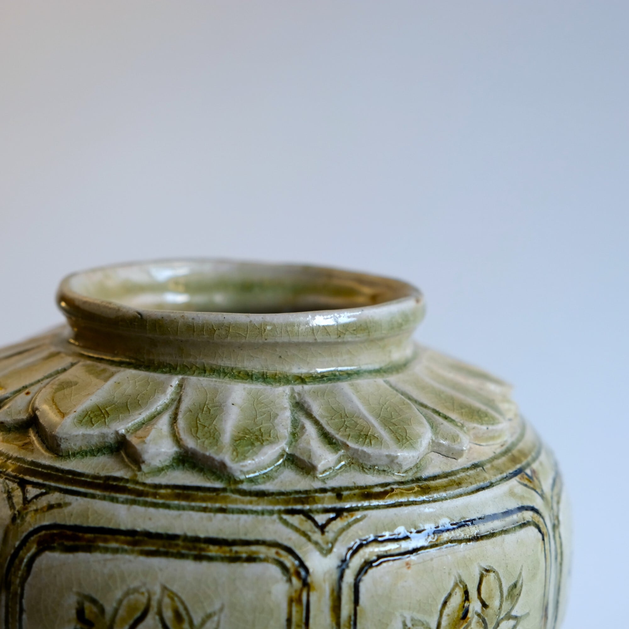 2 灰釉鉄彩連弁花入れ 藤田佳三 Ashed glaze iron-decorated lotus-petal desined flower vase by Keizo Fujita