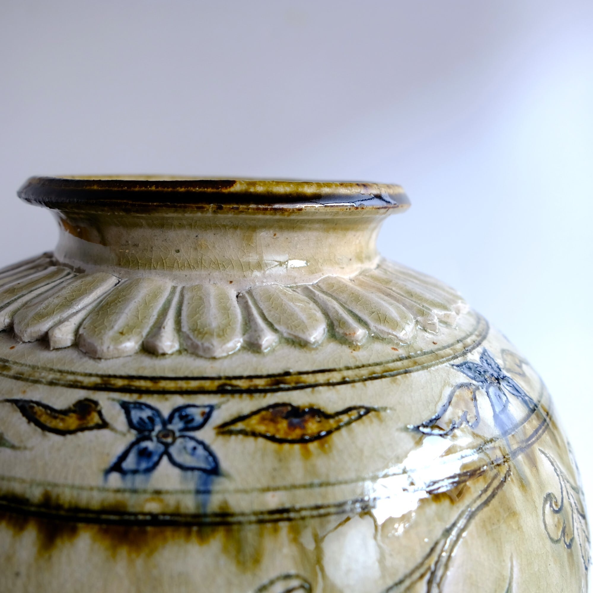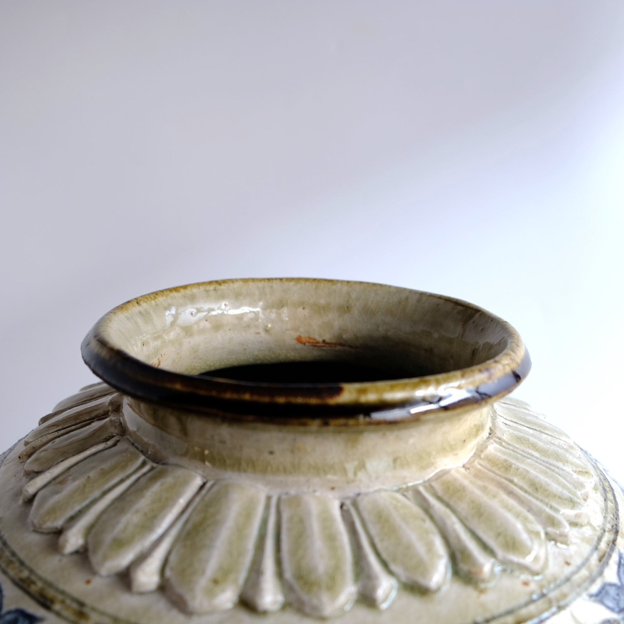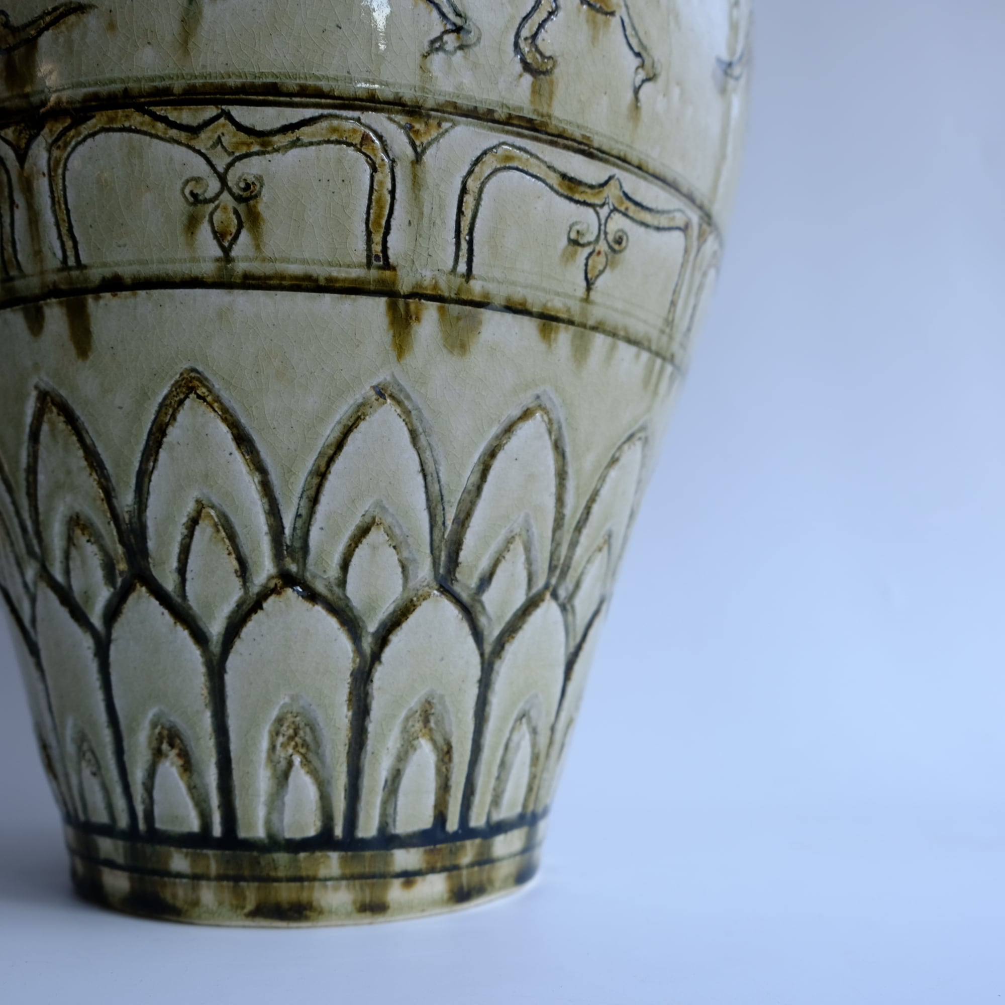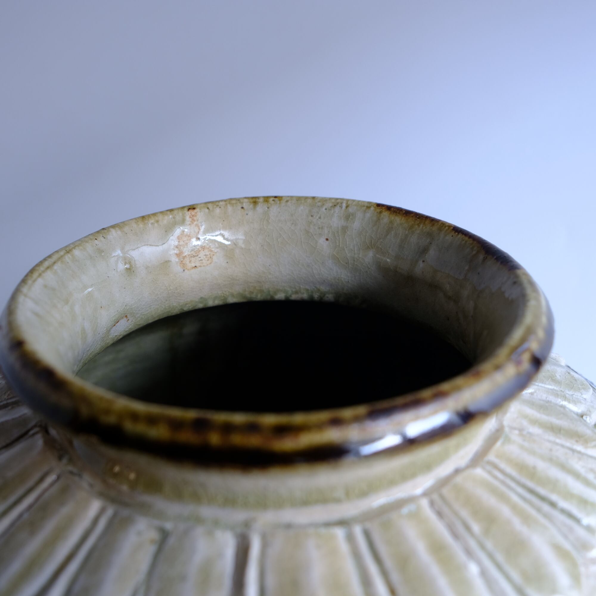 1 灰釉鉄彩連弁壺 藤田佳三 Ashed glaze iron-decorated lotus-petal desined jar by Keizo Fujita