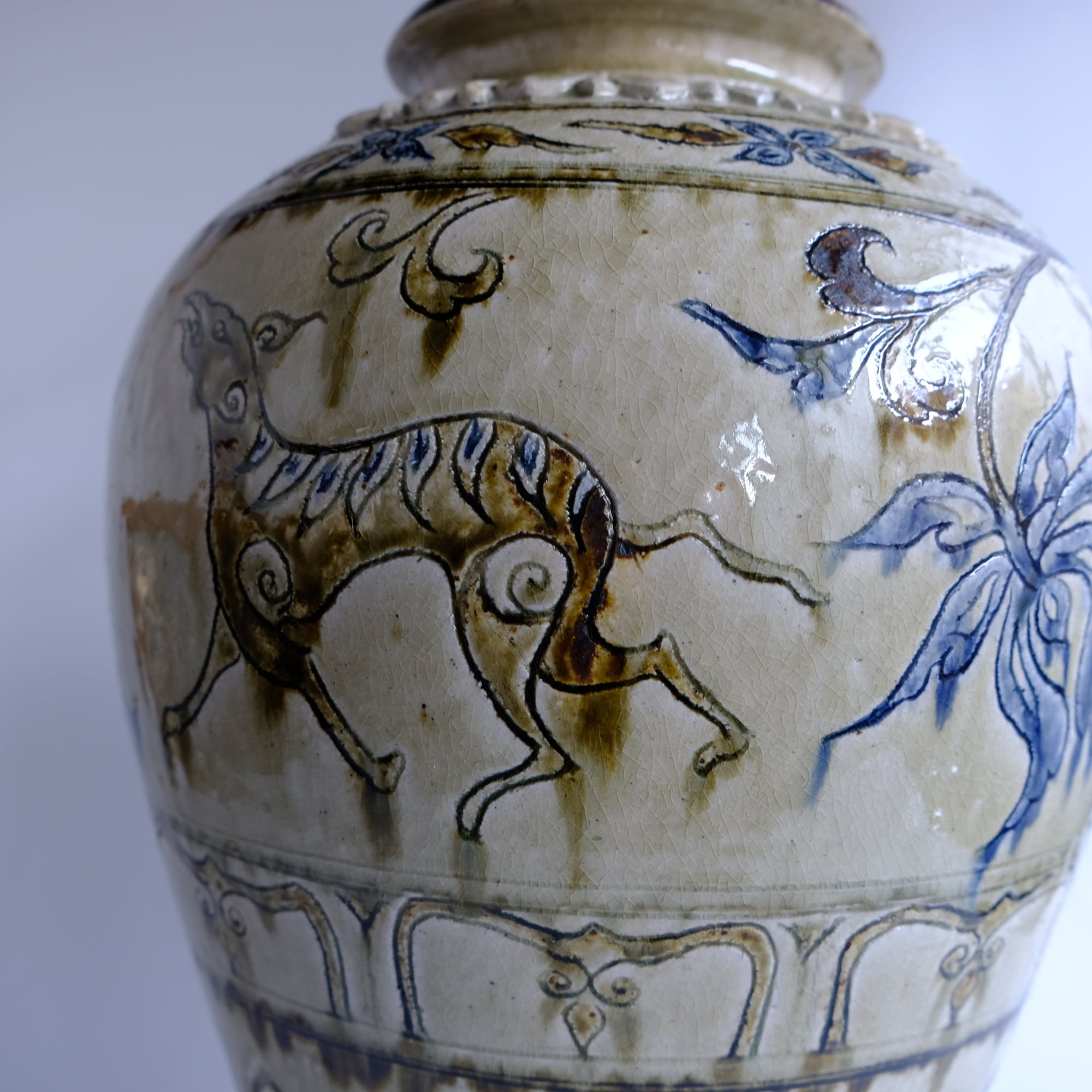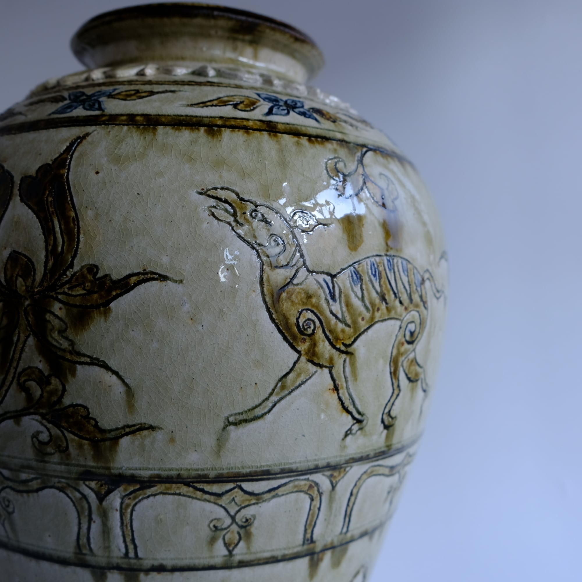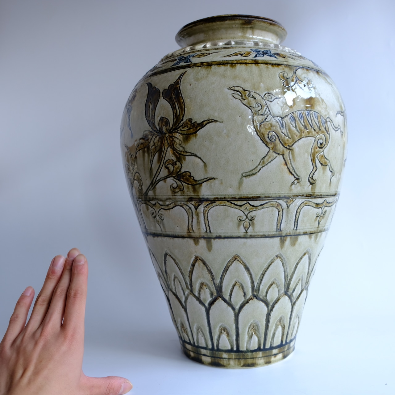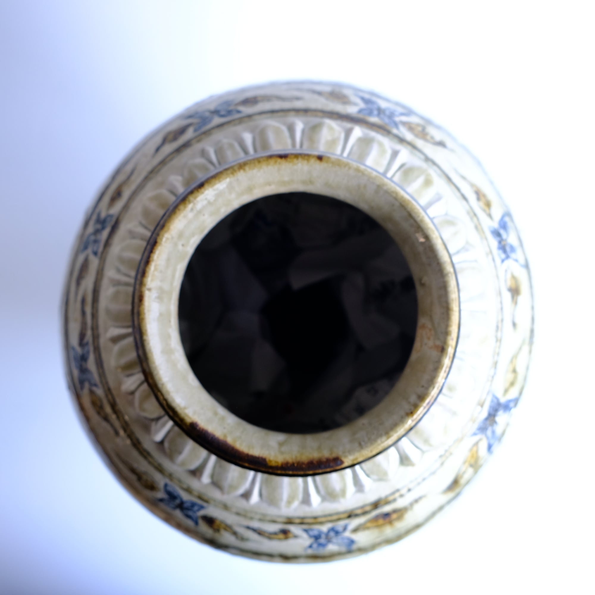 1 灰釉鉄彩連弁壺 藤田佳三 Ashed glaze iron-decorated lotus-petal desined jar by Keizo Fujita