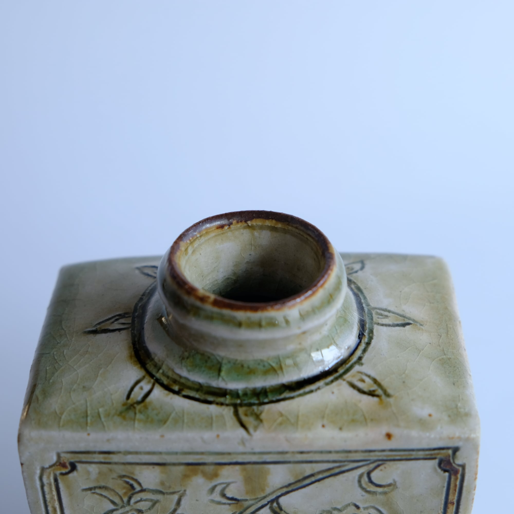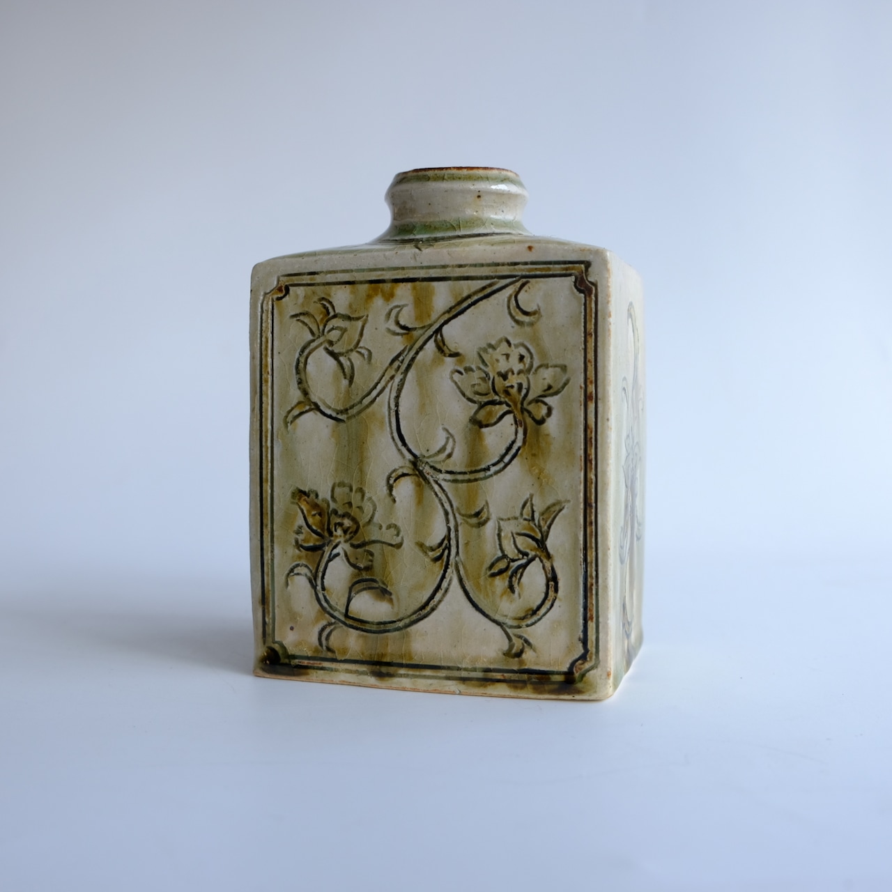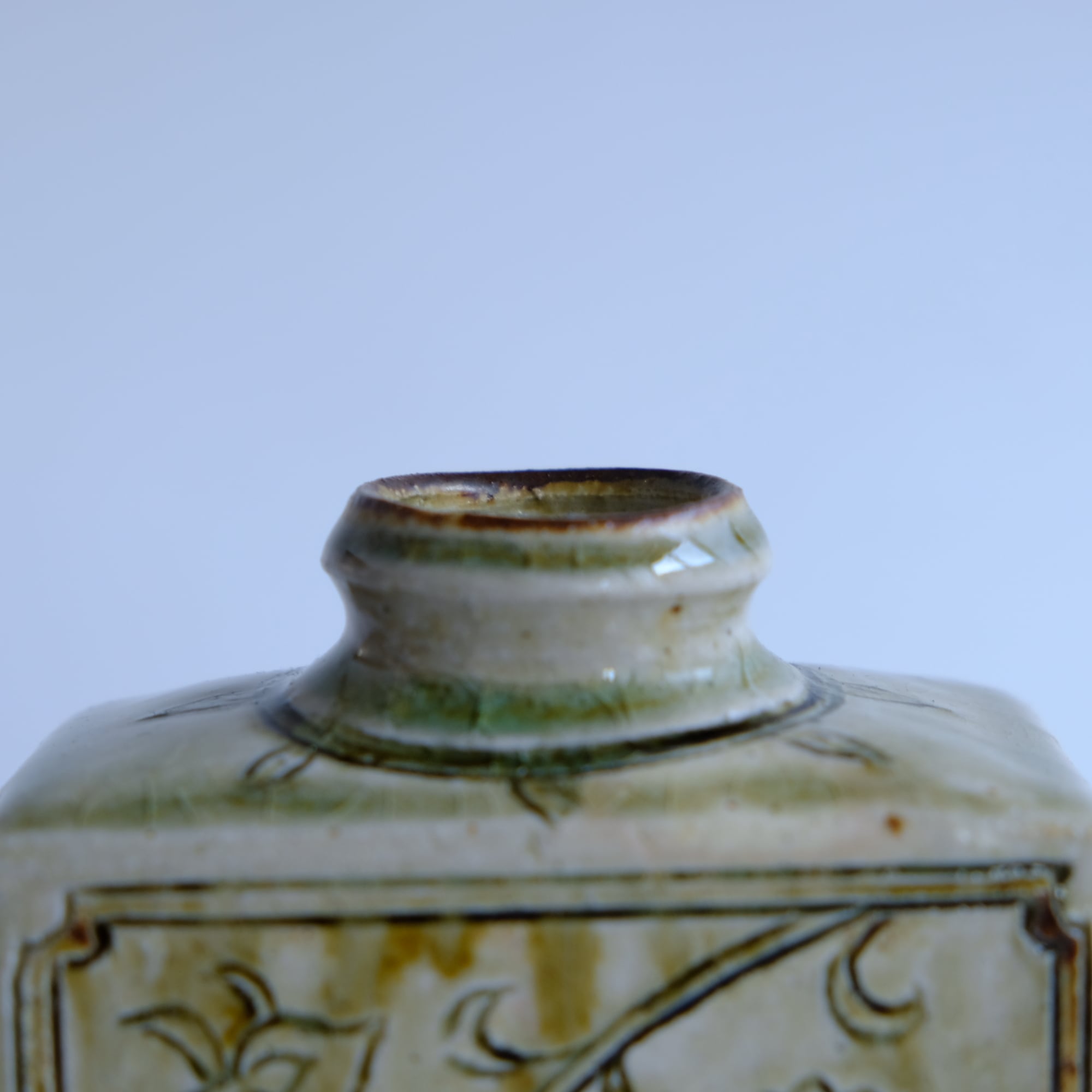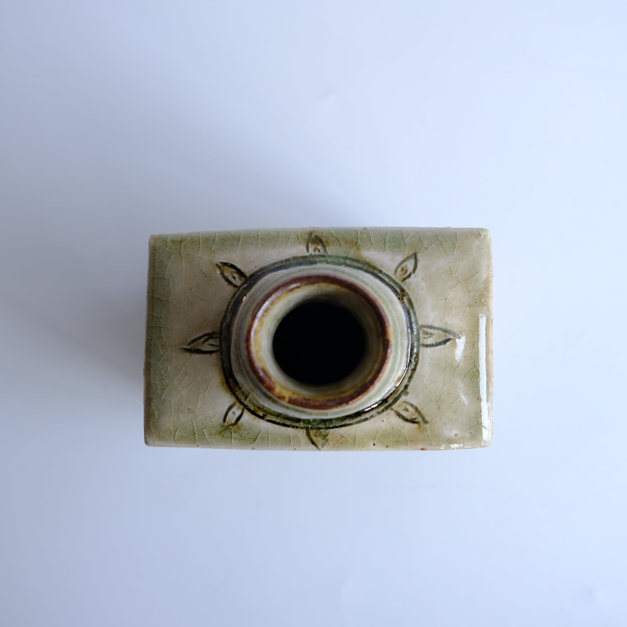 4 灰釉鉄彩四方花入れ 藤田佳三 Ashed glaze iron-decorated square flower vase by Keizo Fujita | Gallery HANNA shopping