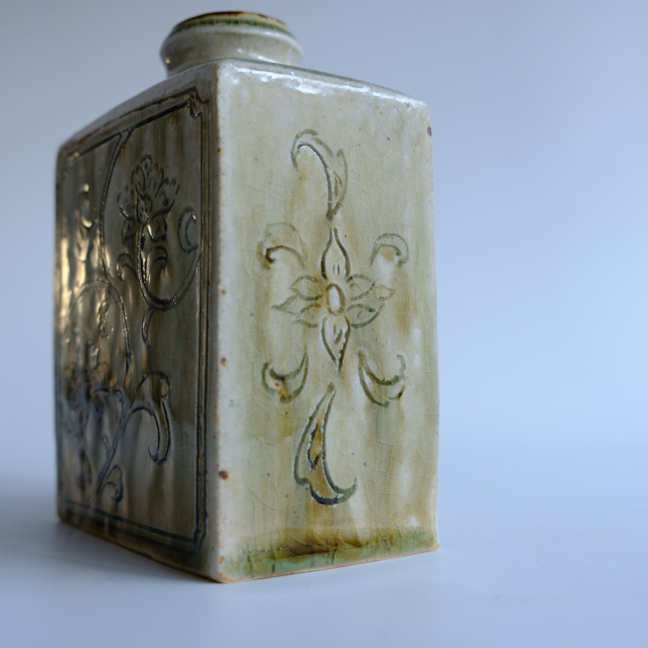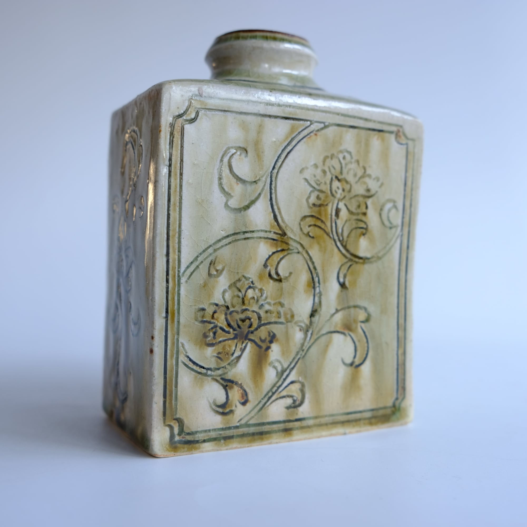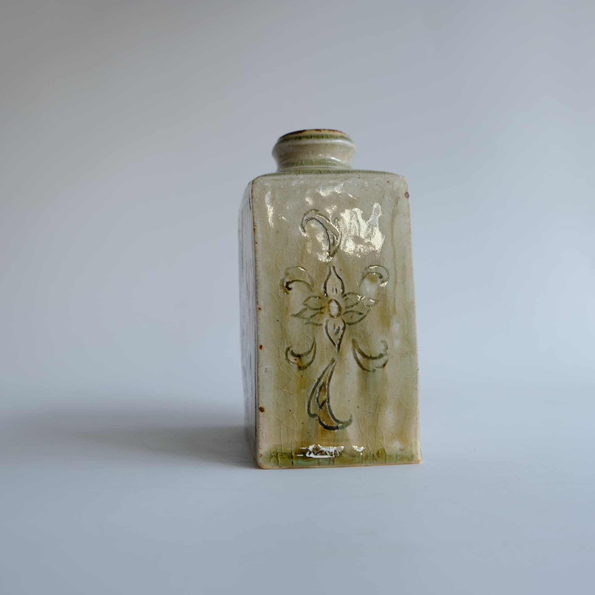 4 灰釉鉄彩四方花入れ 藤田佳三 Ashed glaze iron-decorated square flower vase by Keizo Fujita | Gallery HANNA shopping
