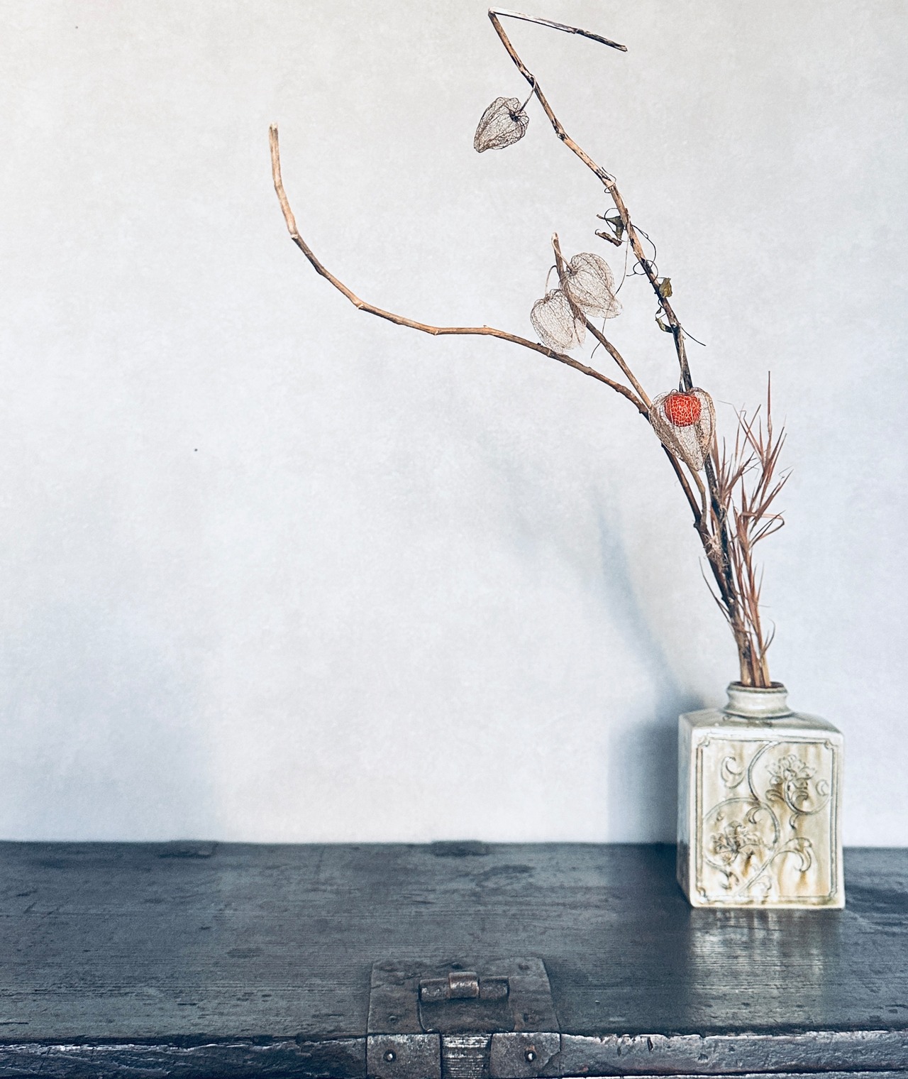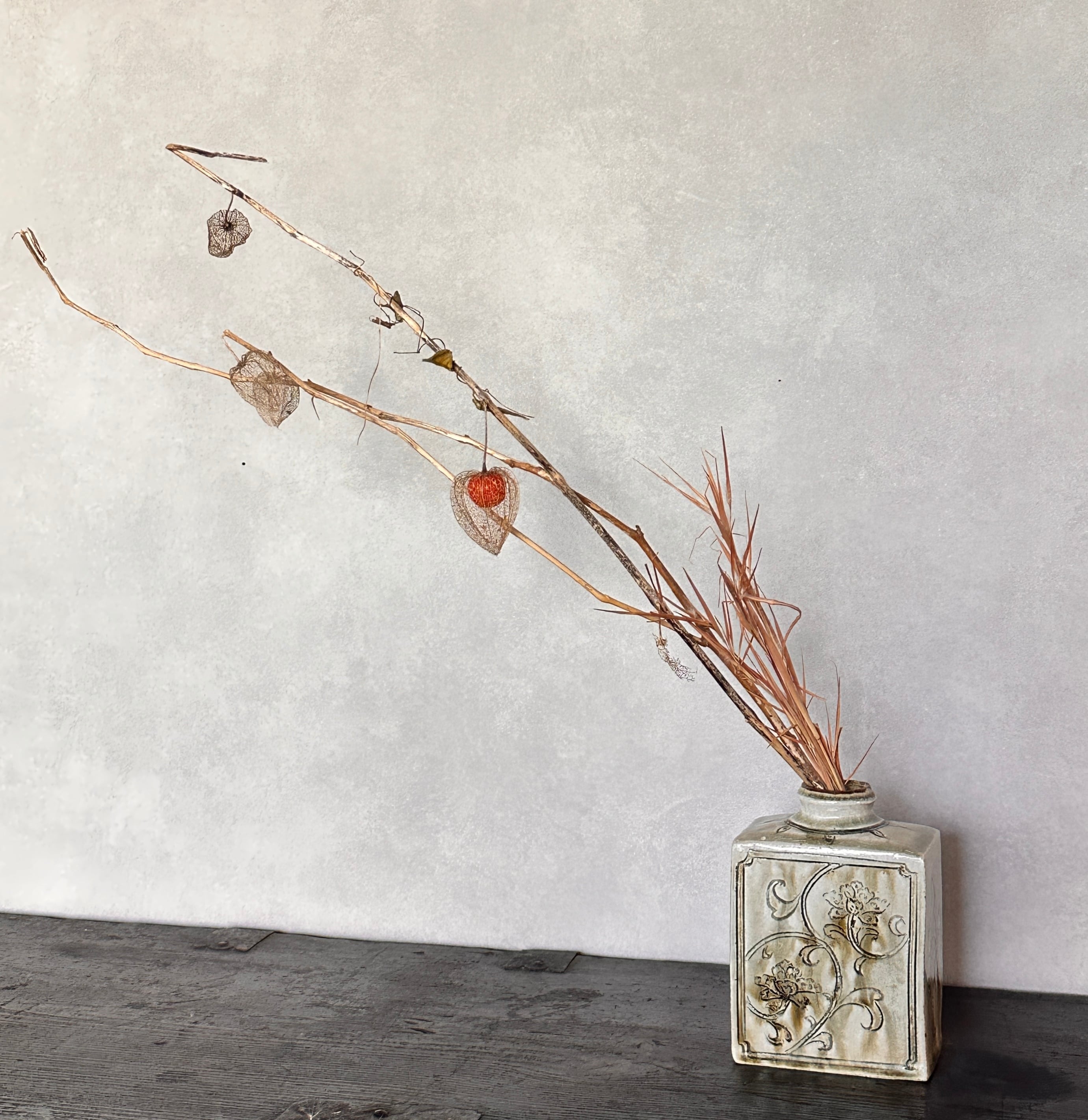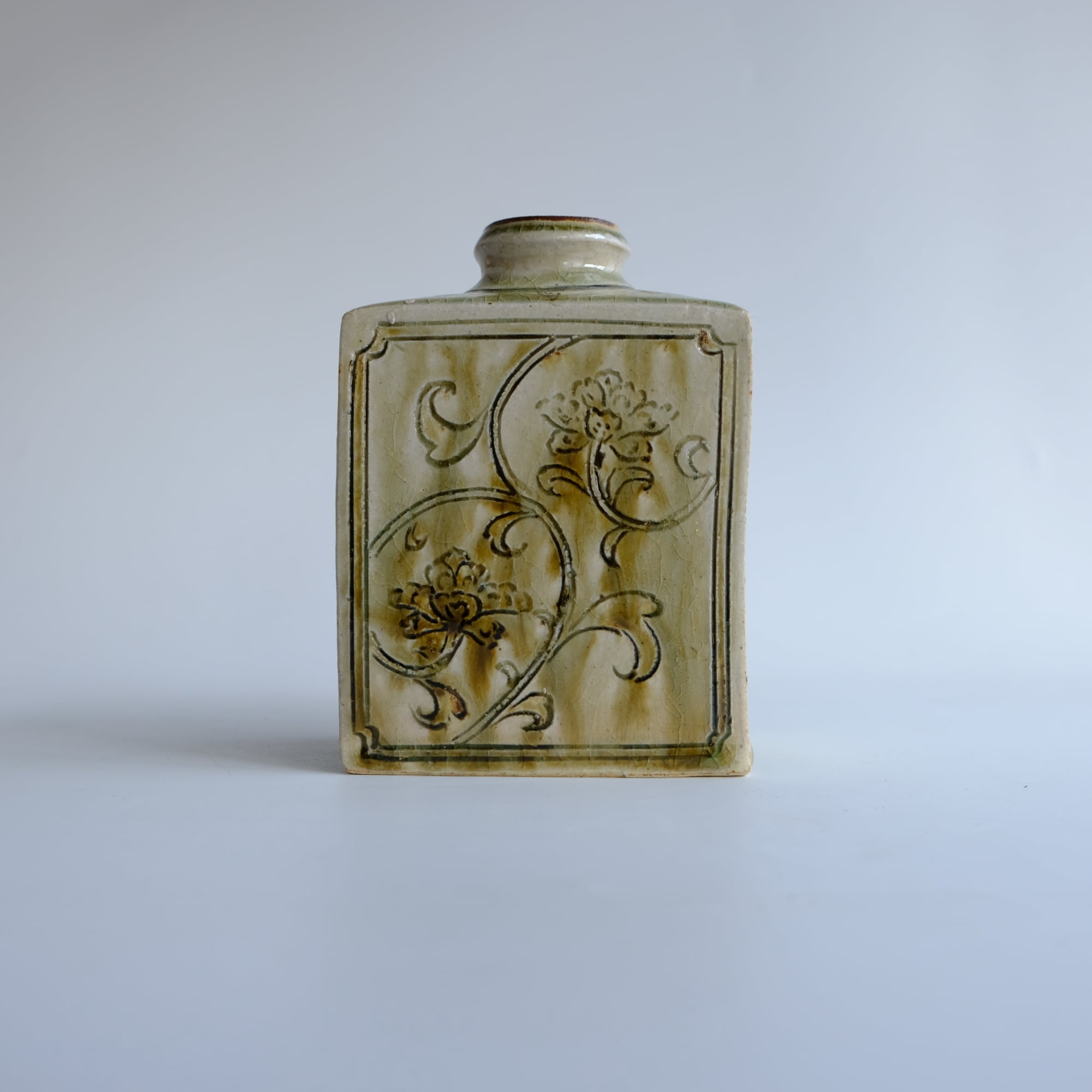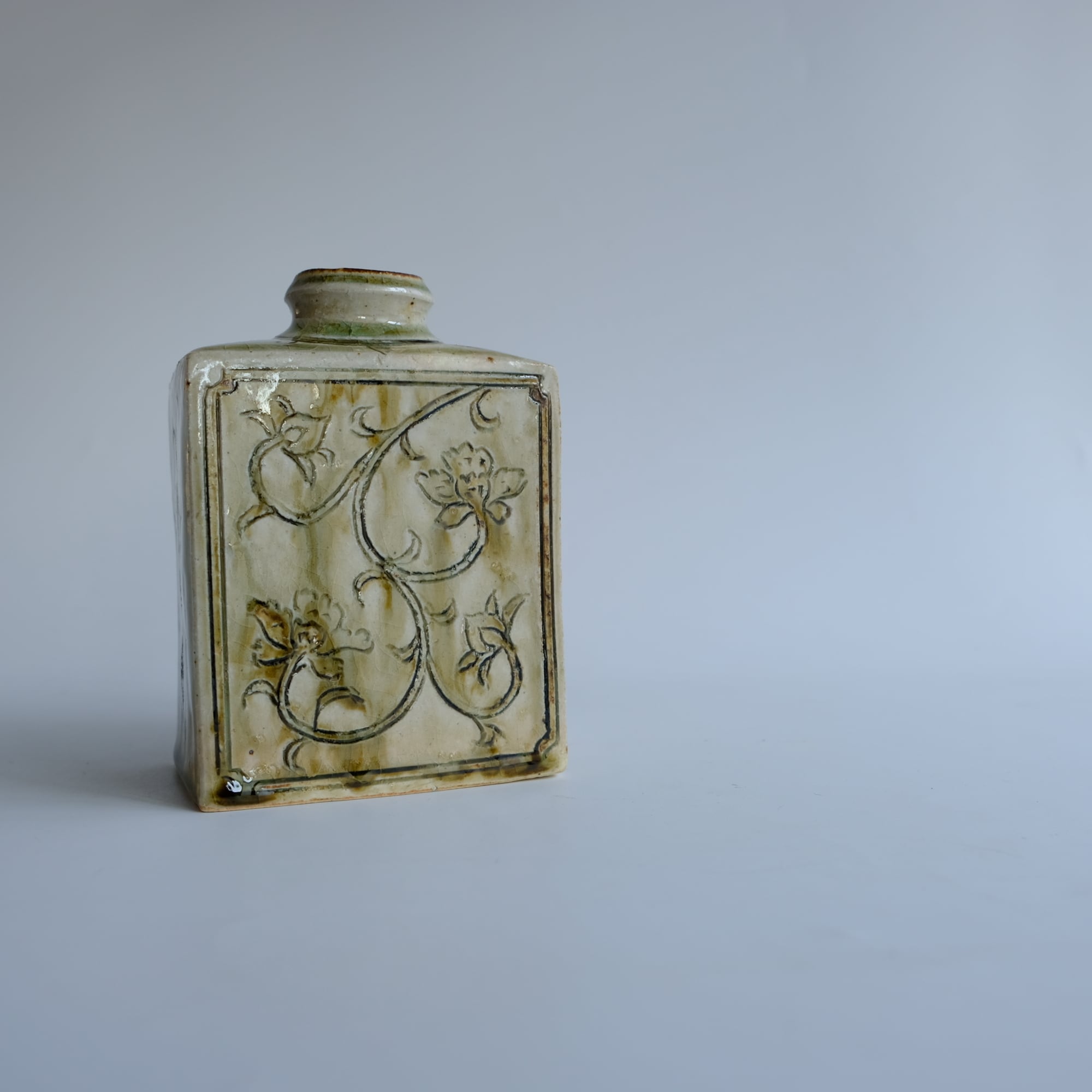 4 灰釉鉄彩四方花入れ 藤田佳三 Ashed glaze iron-decorated square flower vase by Keizo Fujita | Gallery HANNA shopping
