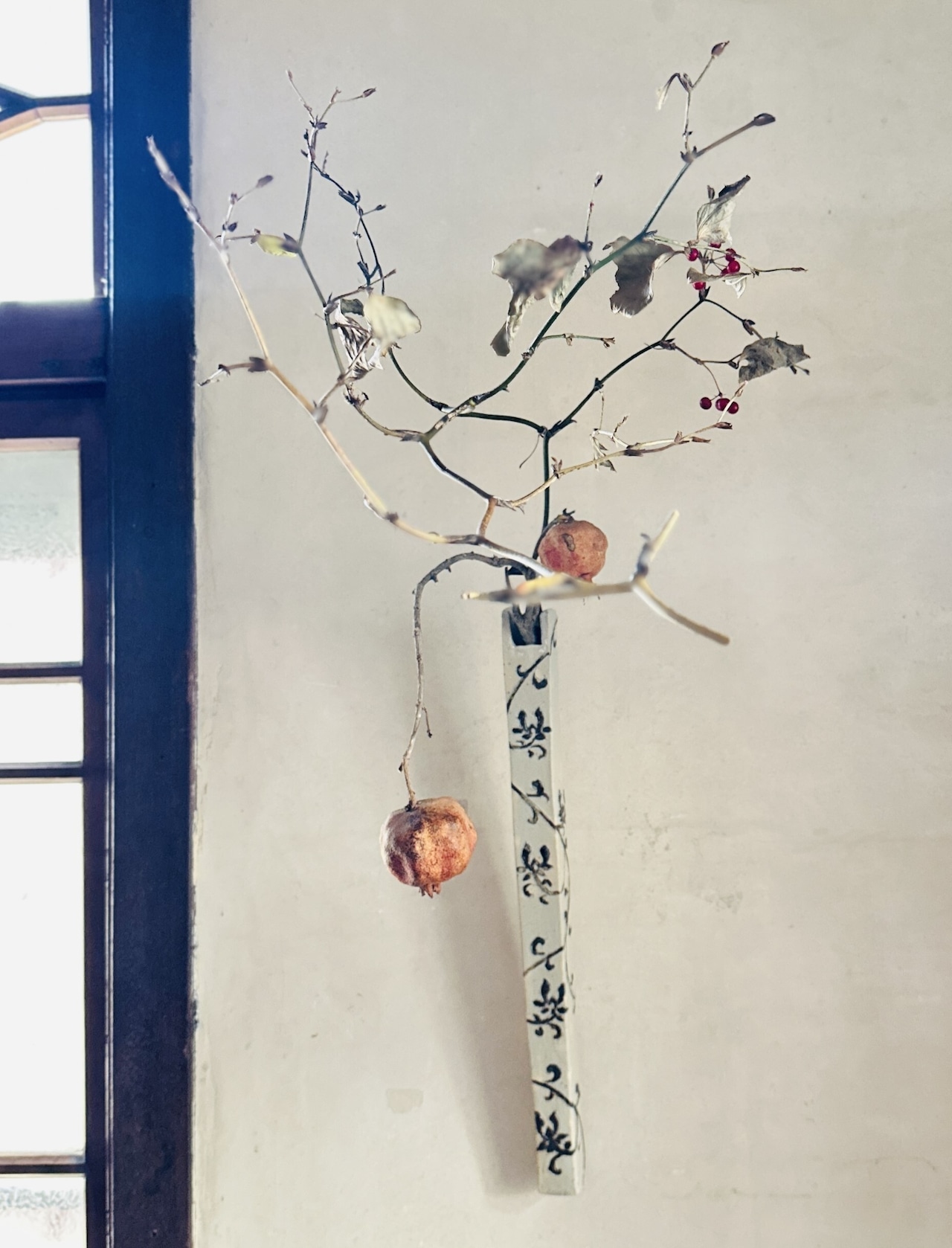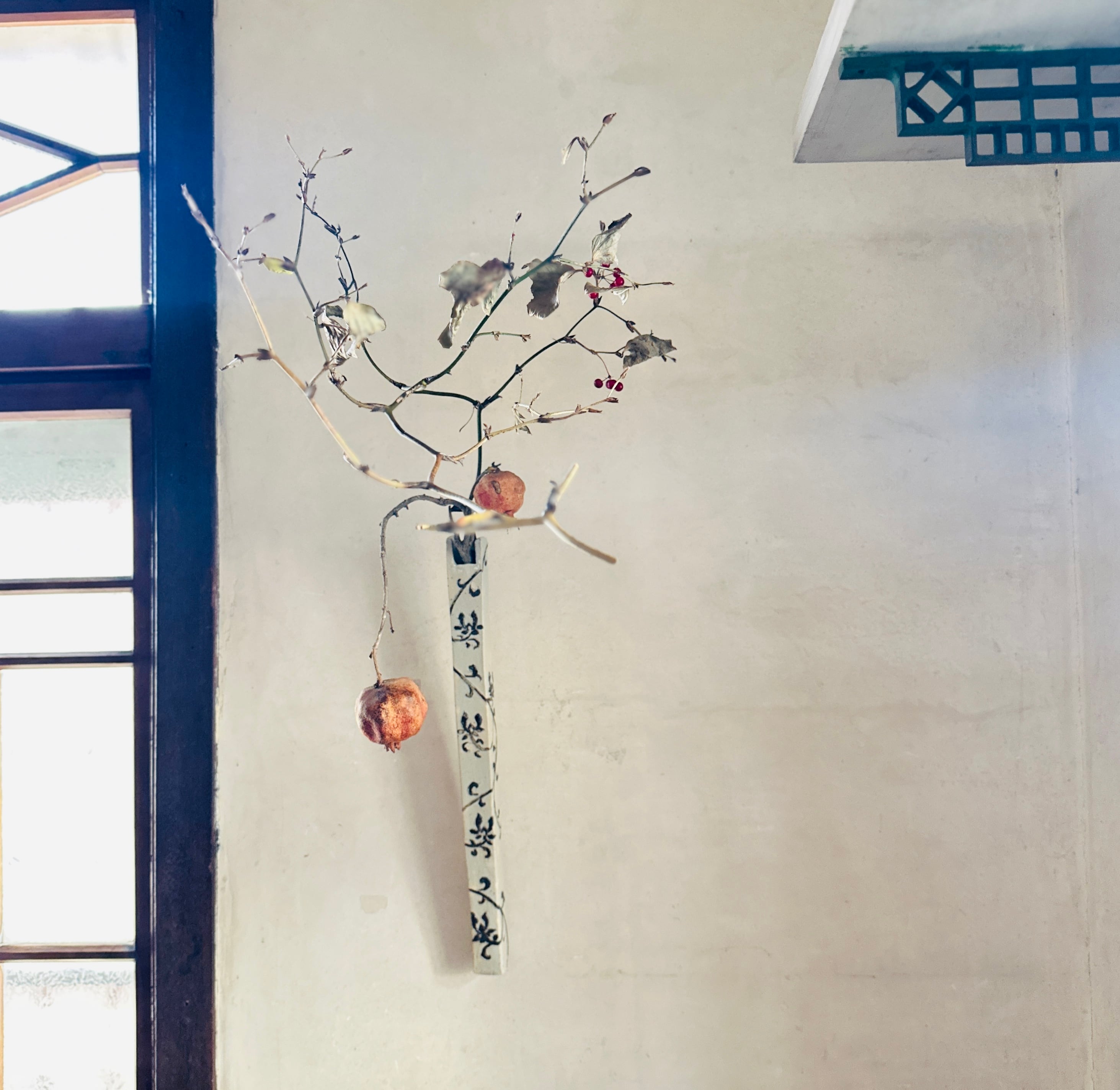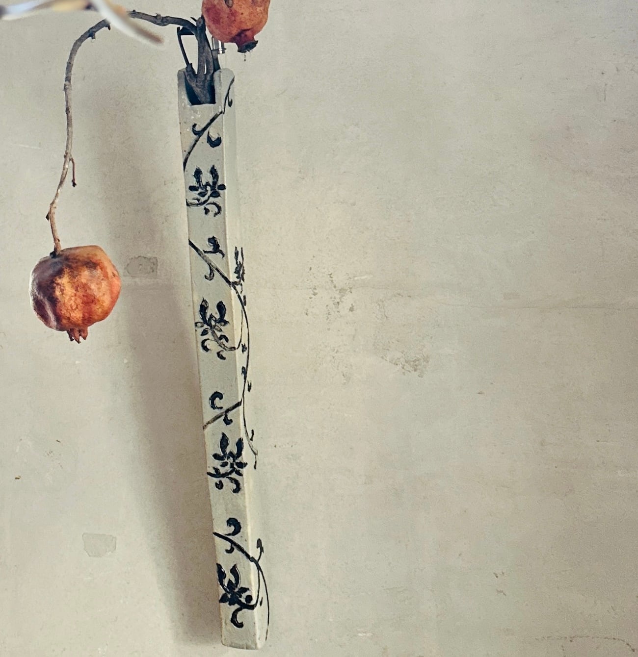 16 鉄彩長方掛花入れ 藤田佳三 Iron-decorated hanging flower vase by Keizo Fujita