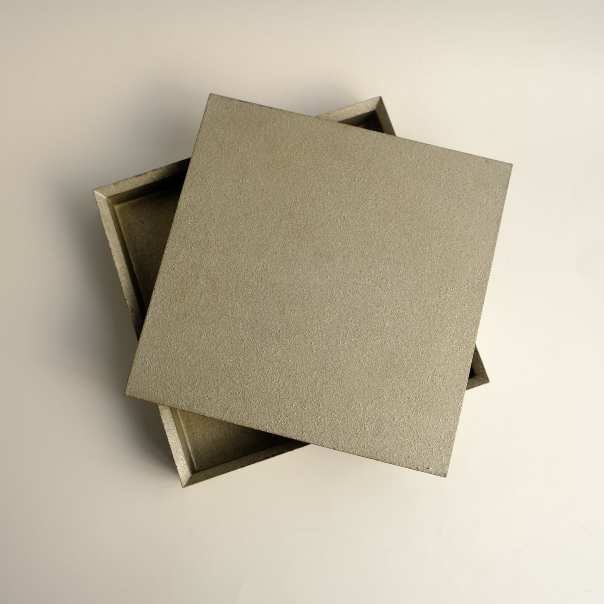 16 一閑張貼箱正角浅 /アルミ蒔地(桐木地、和紙、漆、アルミ粉) / 早水恵一郎 Square box by Keiichiro Hayamizu