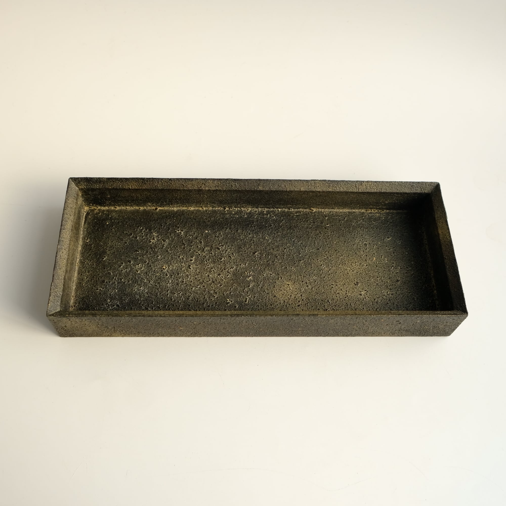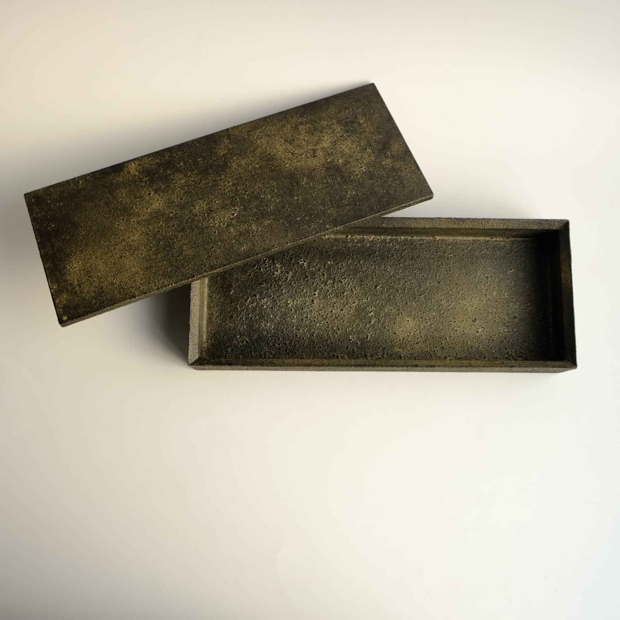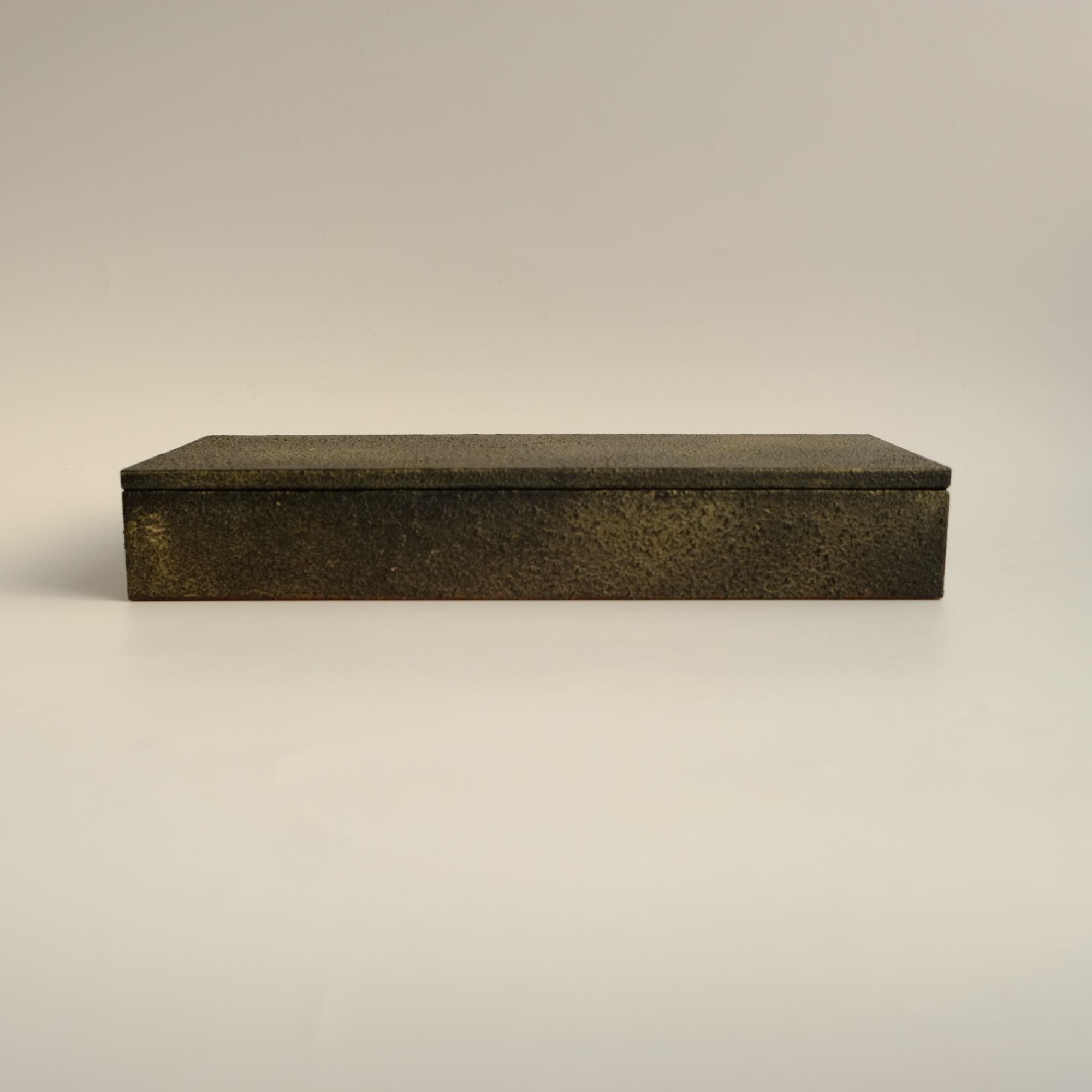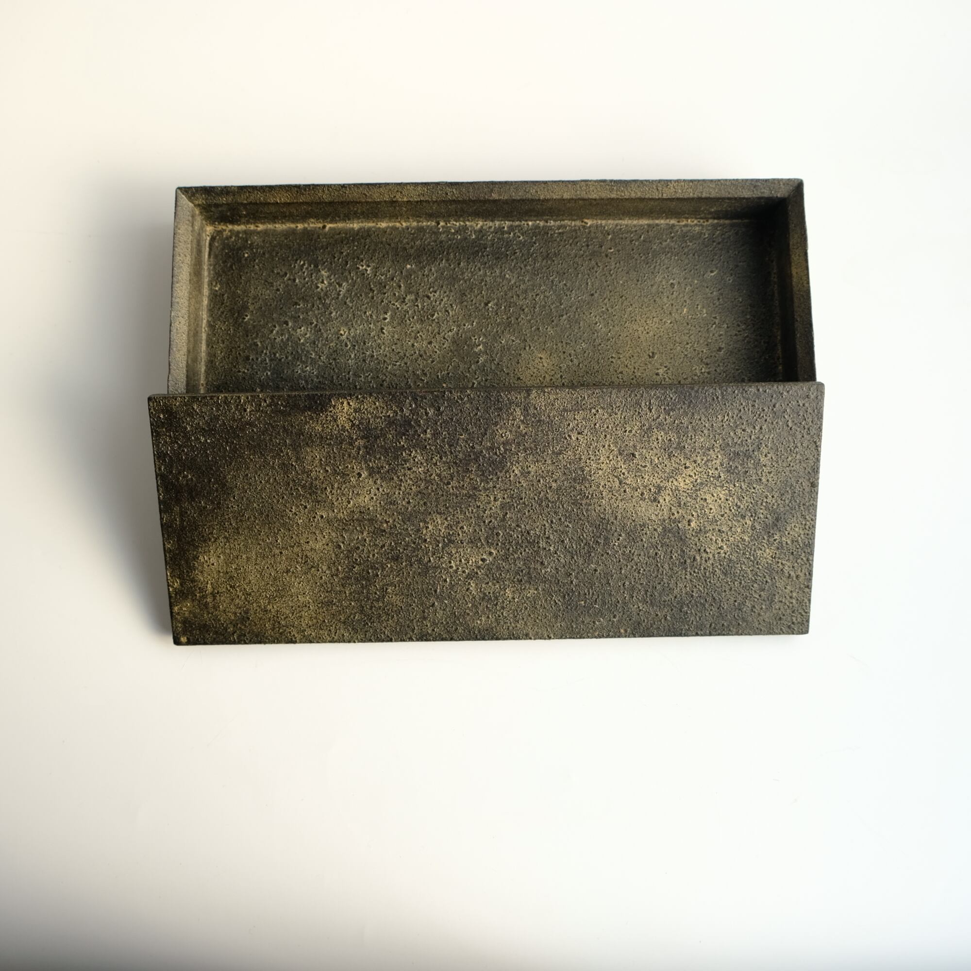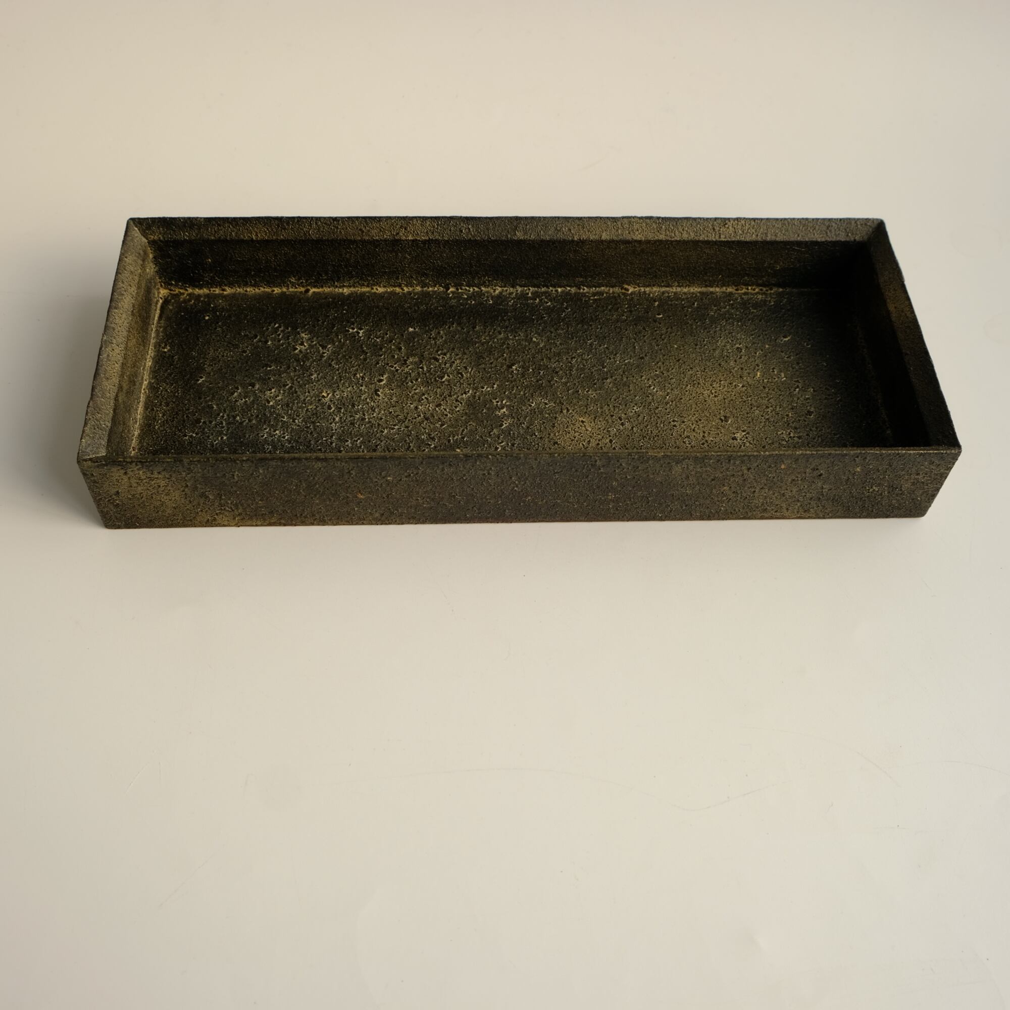 17 一閑張貼箱長角浅/黒蒔地(桐木地、和紙、漆、砥粉) / 早水恵一郎 Rectangle box by Keiichiro Hayamizu