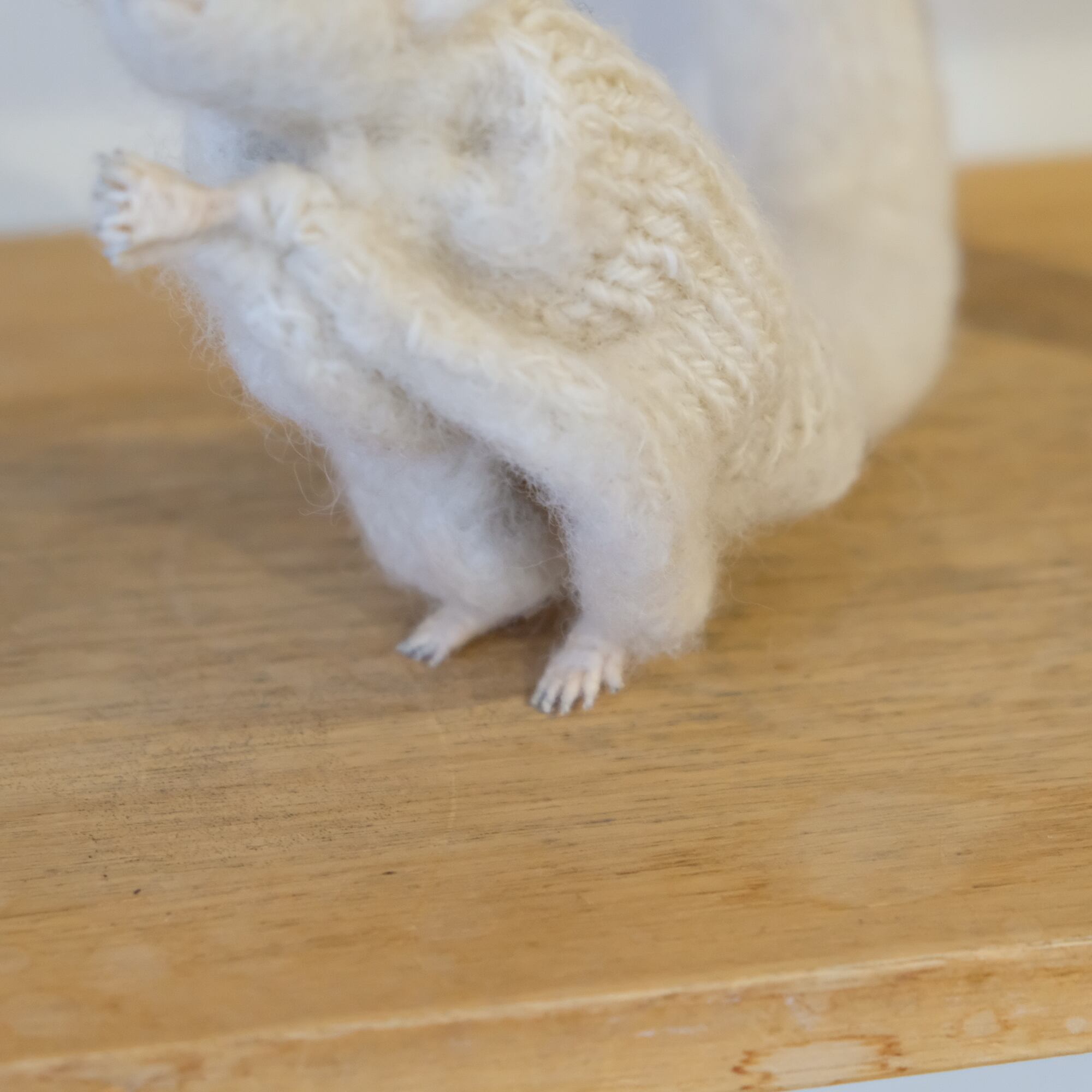 羊の原毛を洗い植物で染め紡いだ糸、棉花を育て紡ぎ-草木染をした綿糸を素材として動物たちを制作。