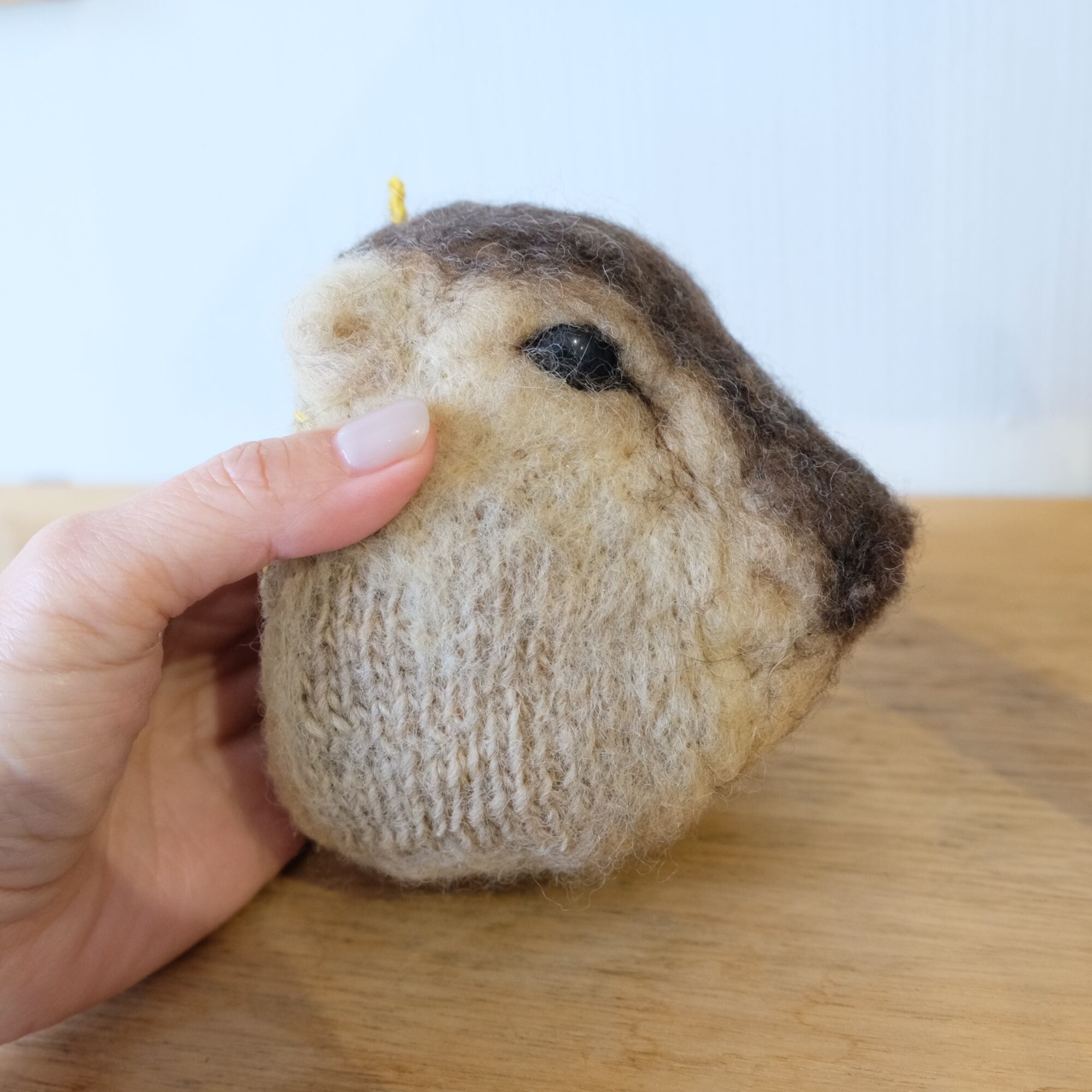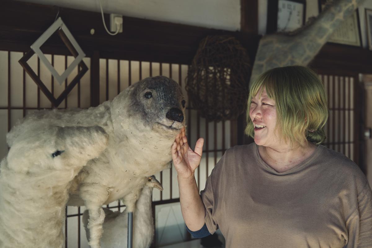 羊の原毛を洗い植物で染め紡いだ糸、棉花を育て紡ぎ-草木染をした綿糸を素材として動物たちを制作。