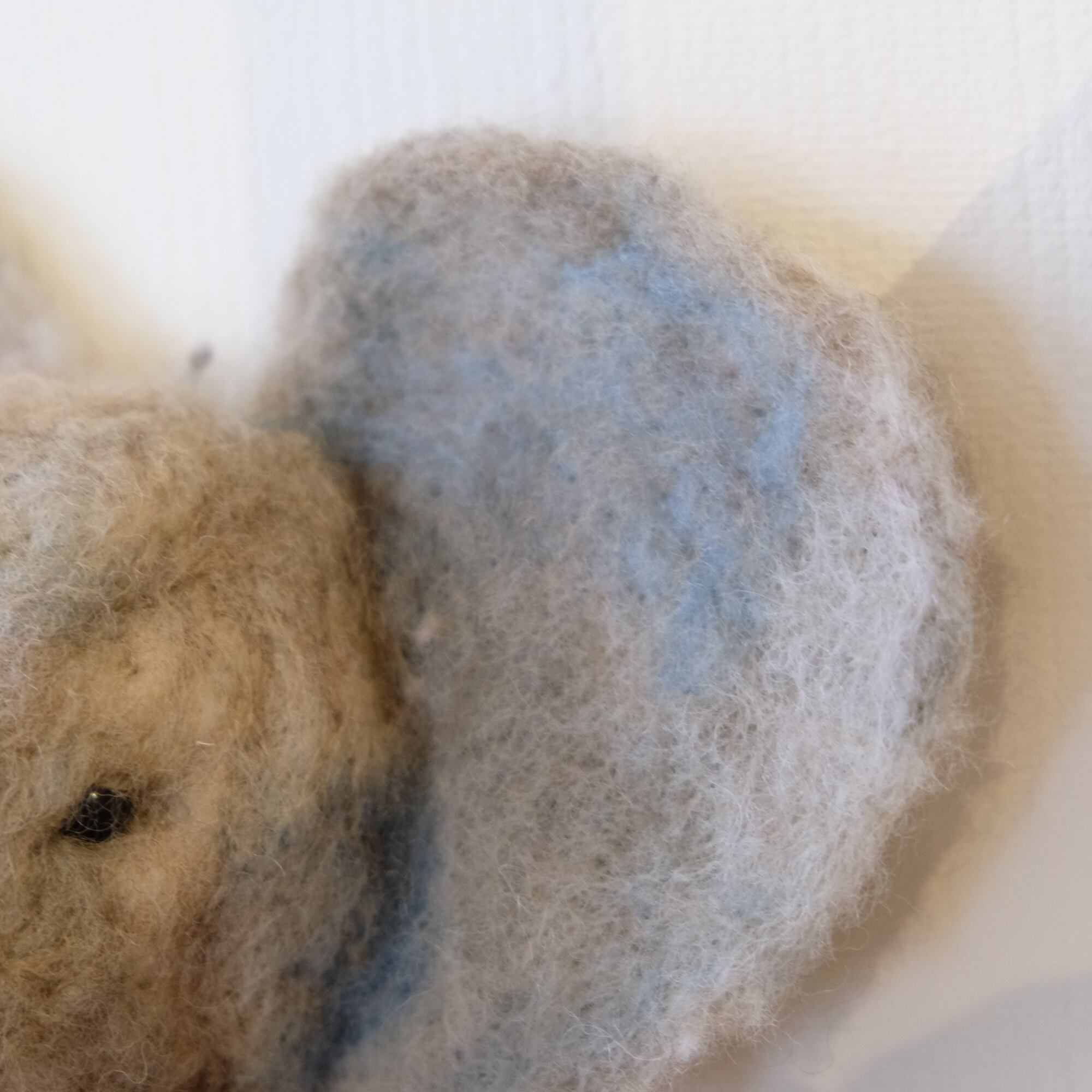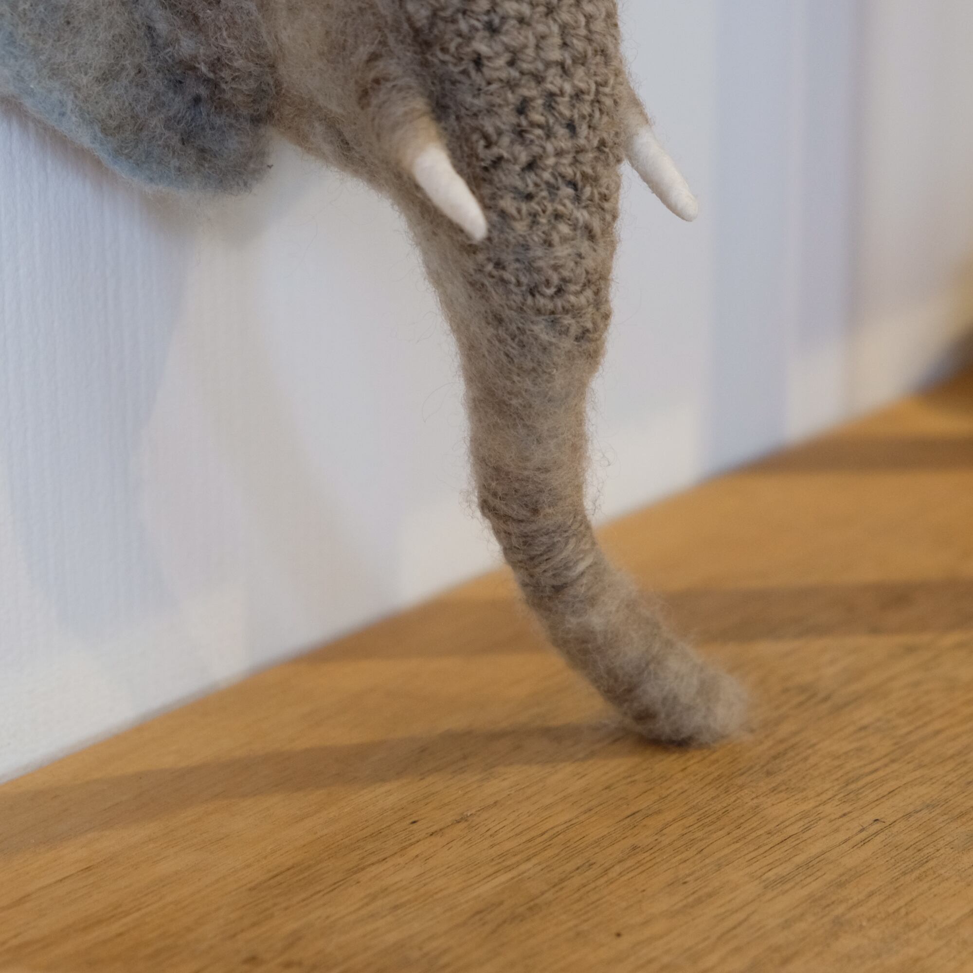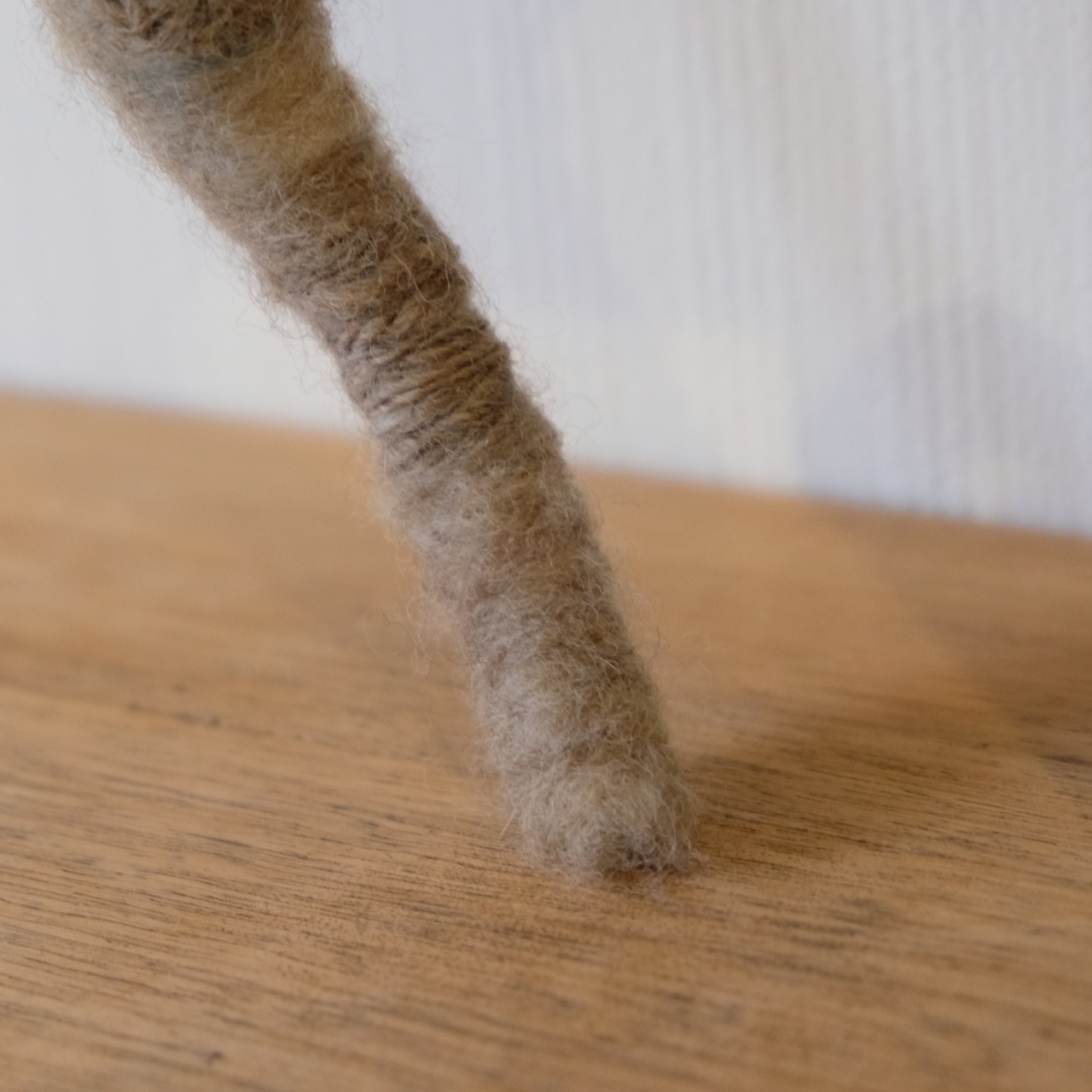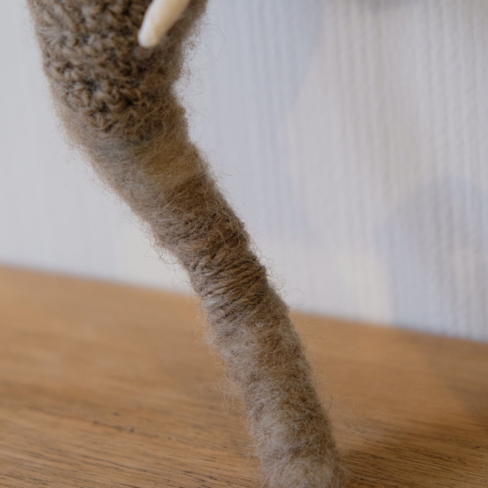羊の原毛を洗い植物で染め紡いだ糸、棉花を育て紡ぎ-草木染をした綿糸を素材として動物たちを制作。