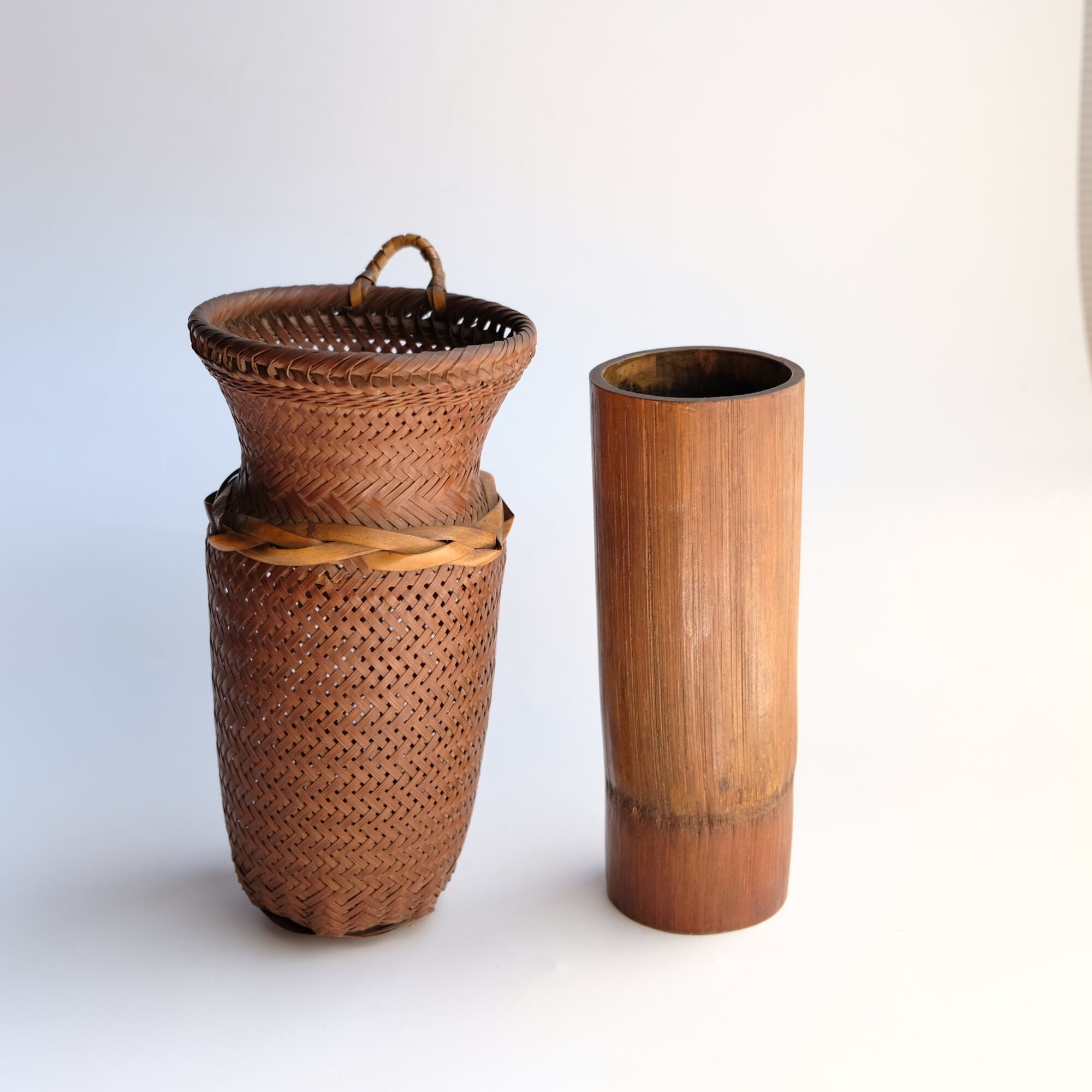 作品名 竹掛花入れ 石川四海 作 Bamboo hanging basket by Shikai Ishikawa